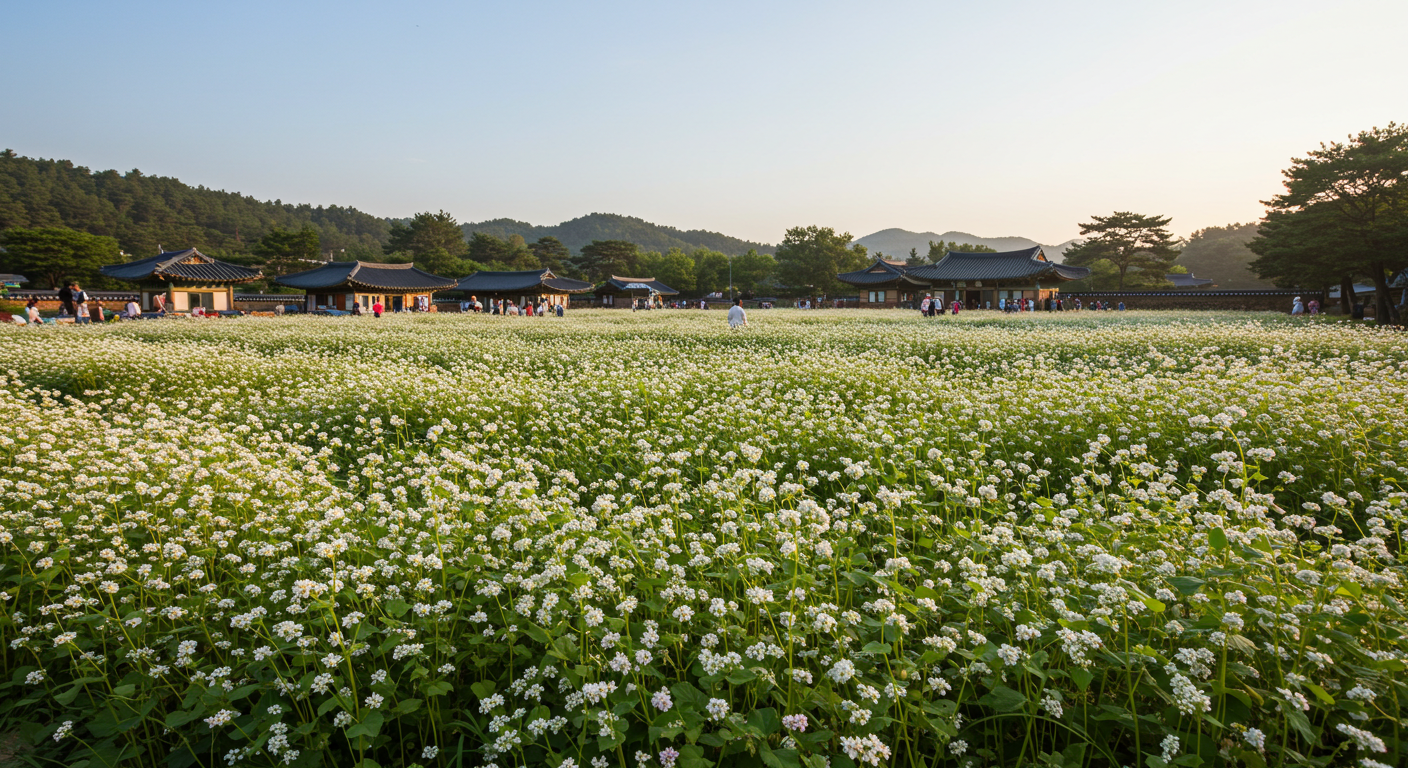 여행의 시작은 평창 효석문화마을 메밀꽃축제가 제격입니다. 소설 『메밀꽃 필 무렵』의 배경이 된 이곳에서 흰 메밀꽃이 가득 핀 들판을 거닐며 전통 가옥 체험, 메밀 음식 시식까지 즐겨보세요. 오후에는 원주 소금산 출렁다리로 이동해 국내 최대 구름다리에서 시원한 바람과 짜릿한 풍경을 만끽할 수 있습니다.