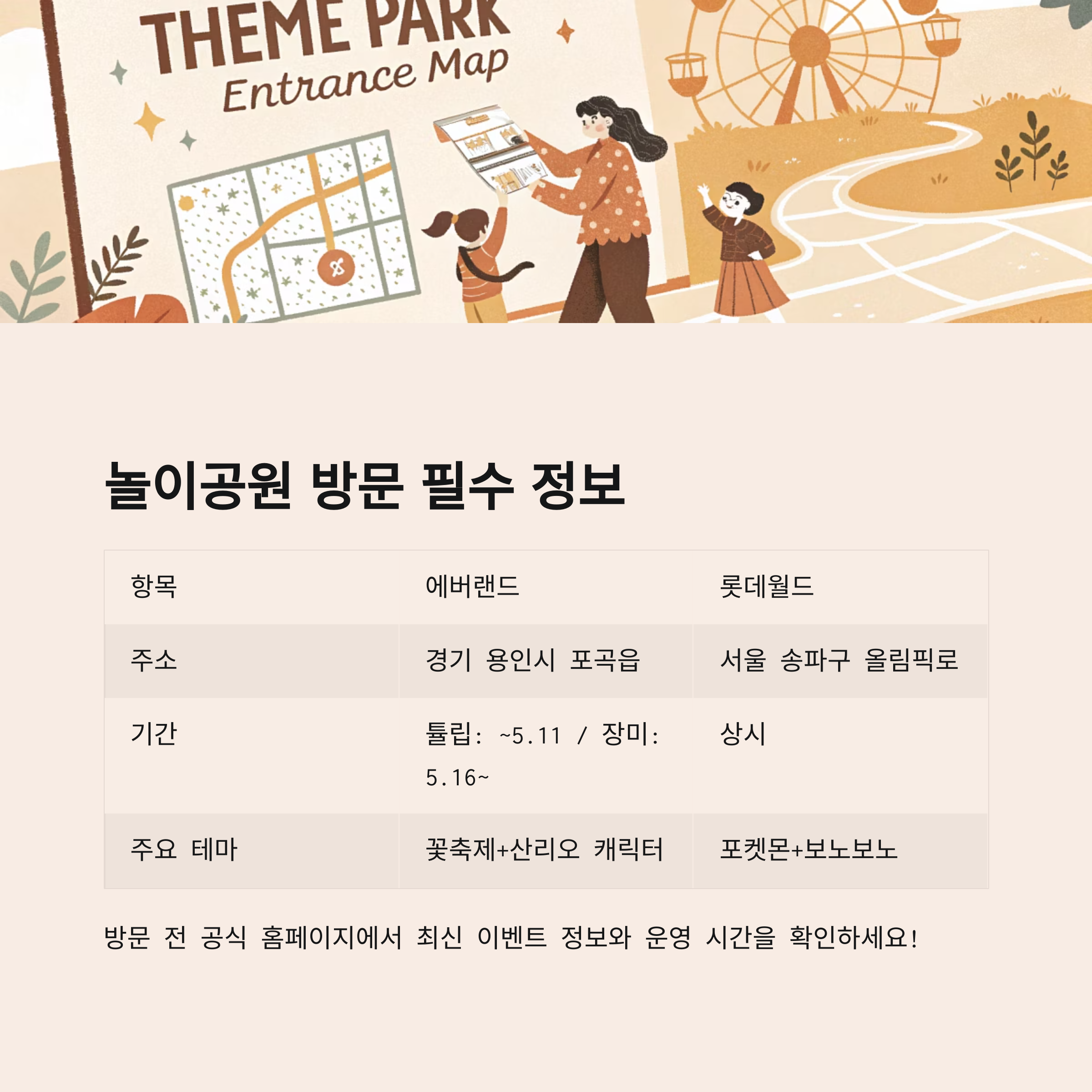 놀이공원 테마 방문 시 참고사항