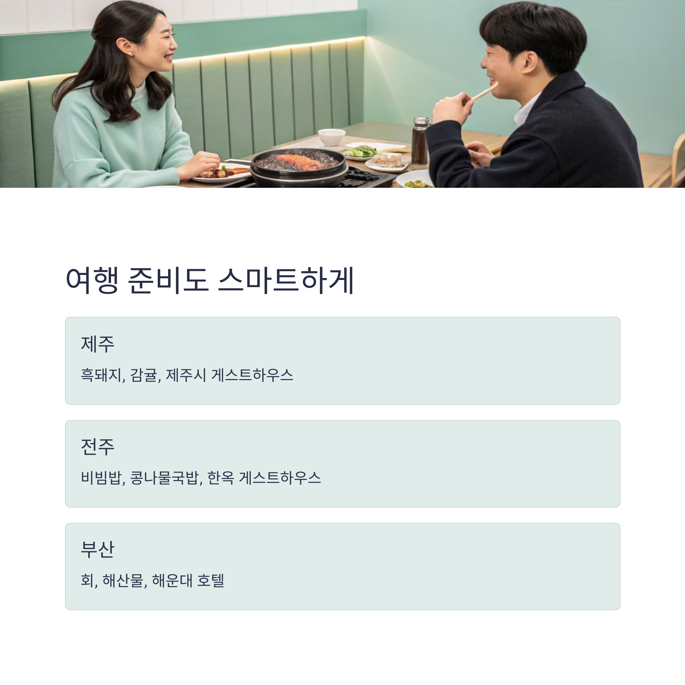 먹거리, 숙박, 예약까지 여행준비도 스마트하게