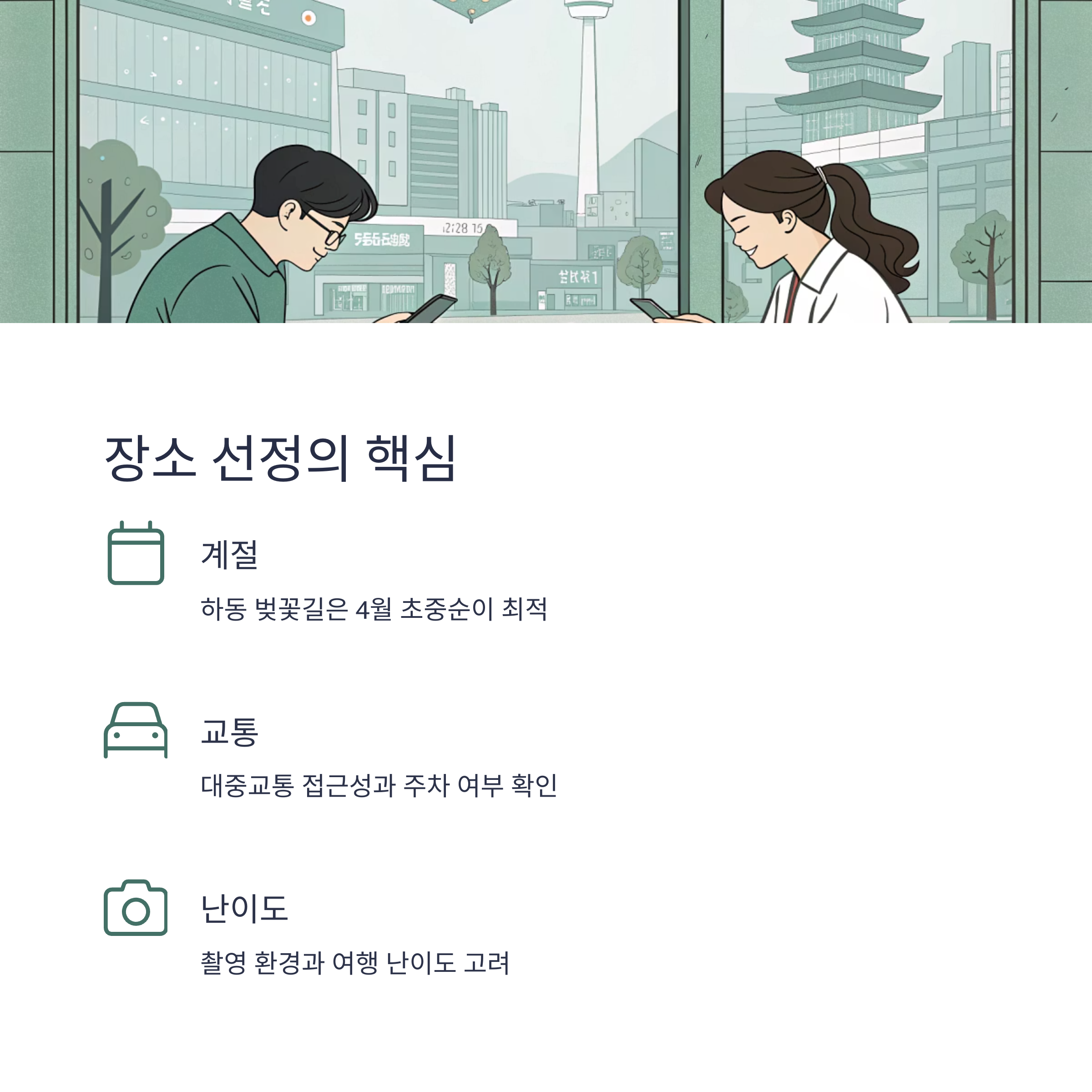 장소 선정 기준: 계절, 교통, 촬영 난이도를 따져보세요