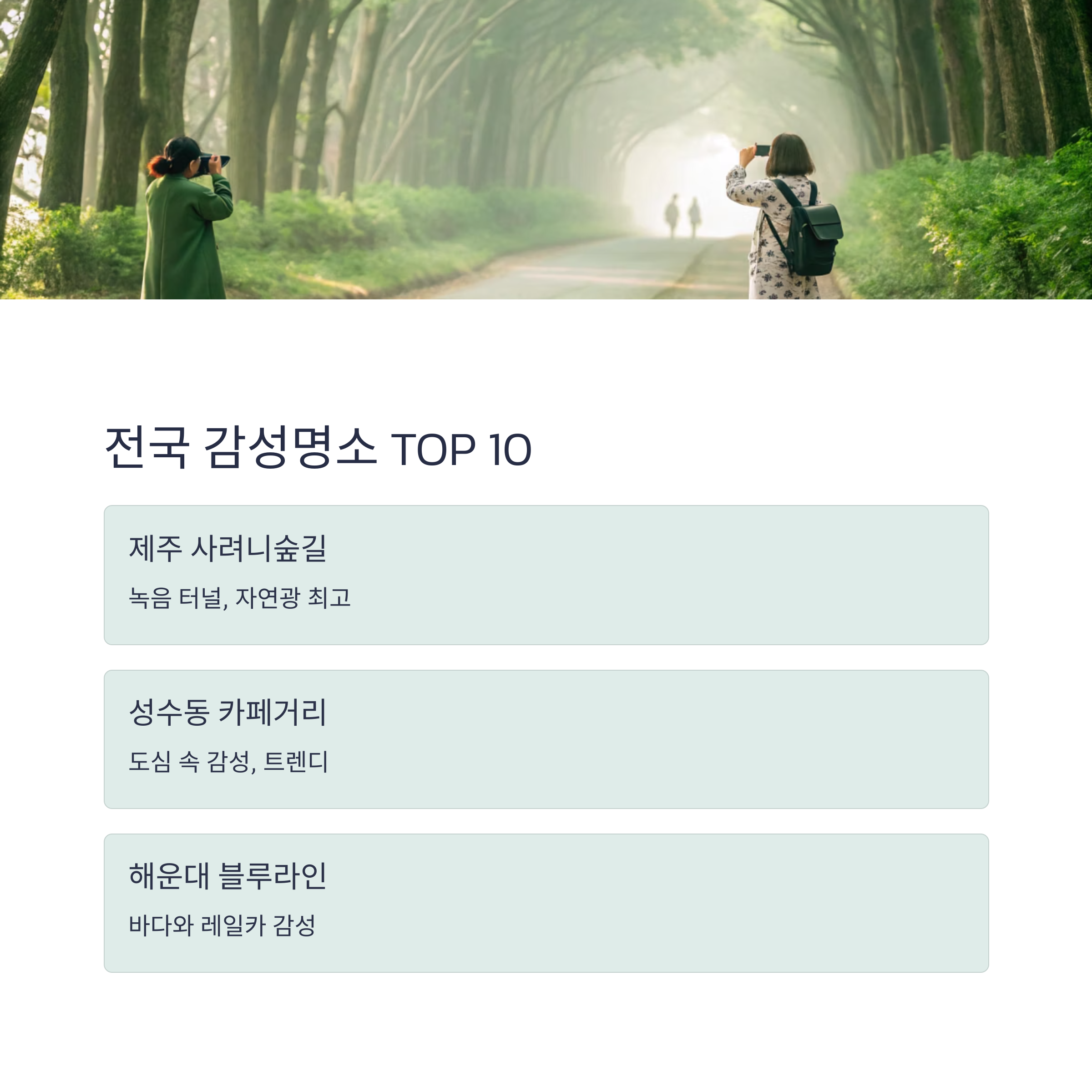 감성사진이 빛나는 장소, 전국 감성명소 TOP 10