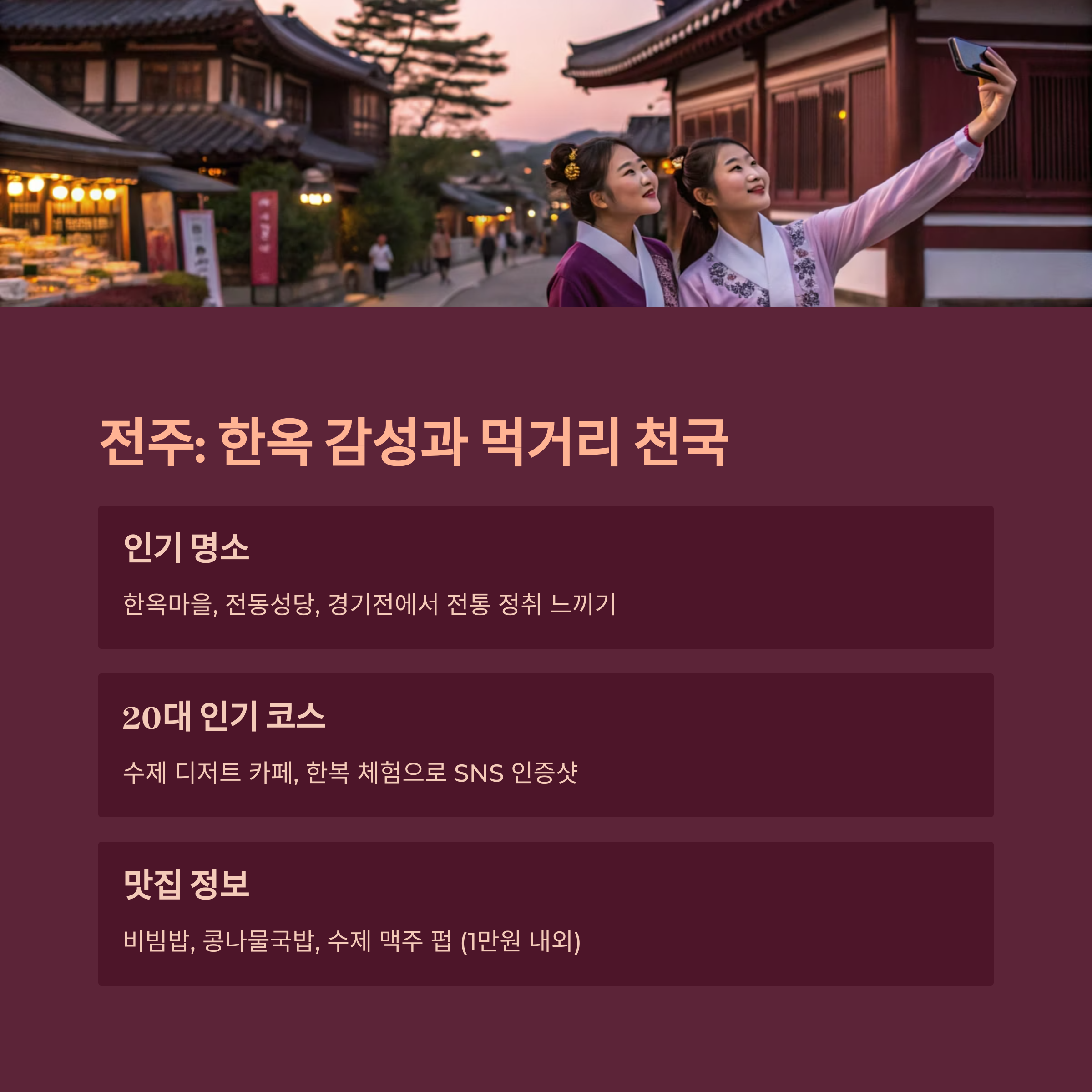 | 전주 | 한옥마을 돌담길 | 전통 감성 |