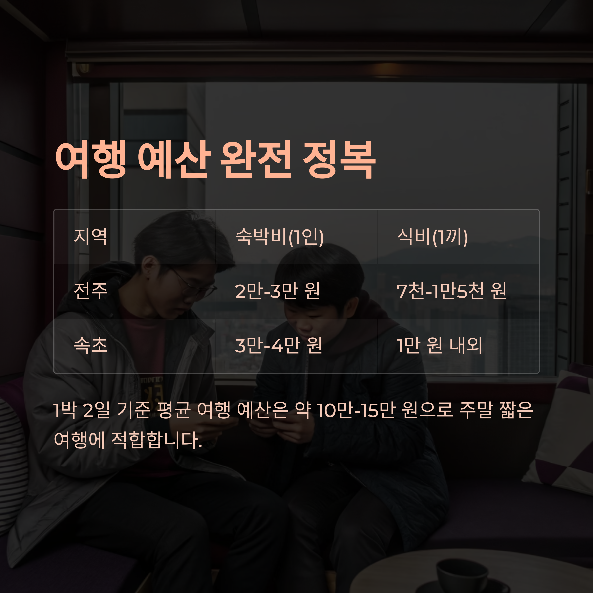 1박 2일 기준 평균 여행 예산은 약 10만15만 원이며,4만 원 수준입니다.