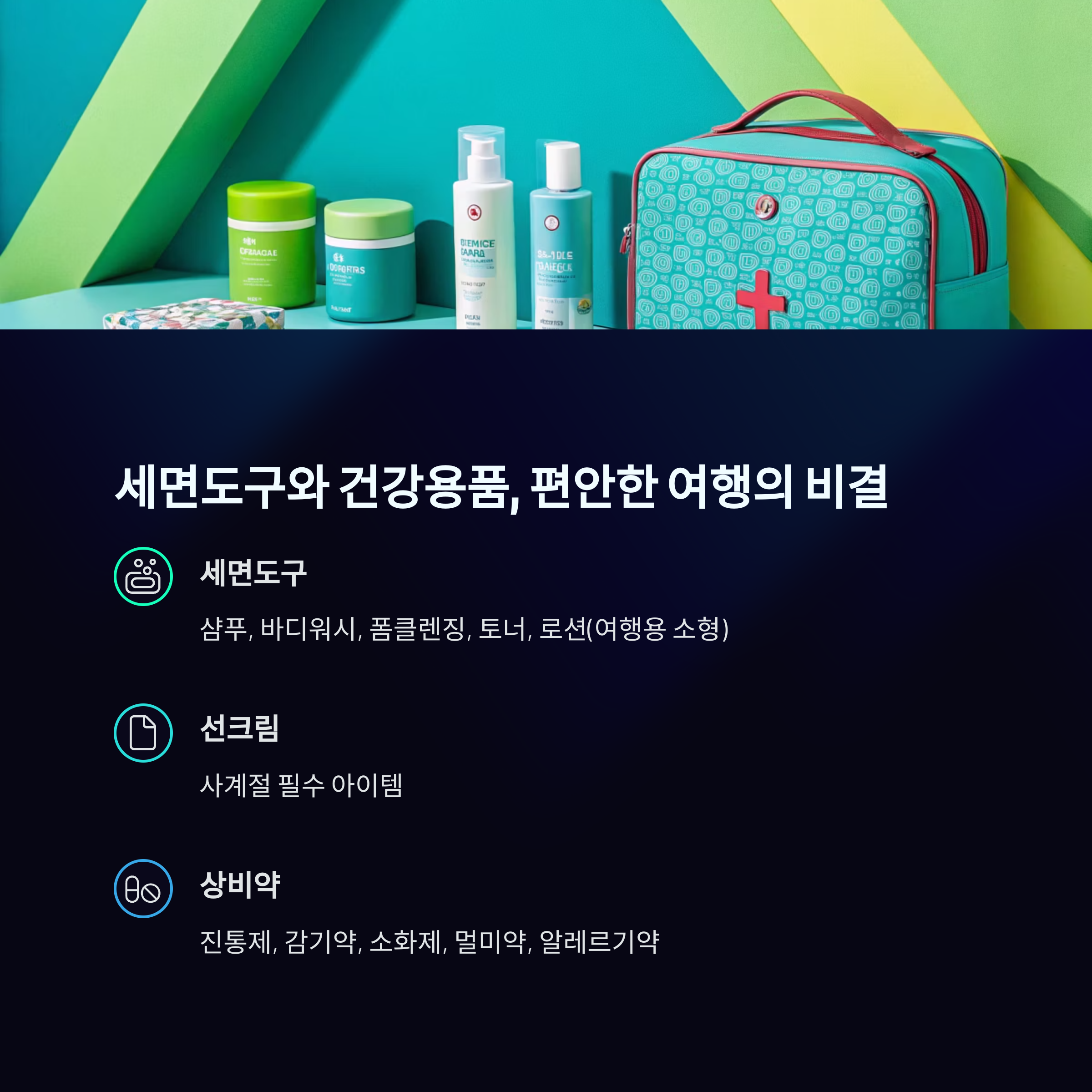 - 샴푸, 바디워시, 린스 (여행용 소형 제품 추천)