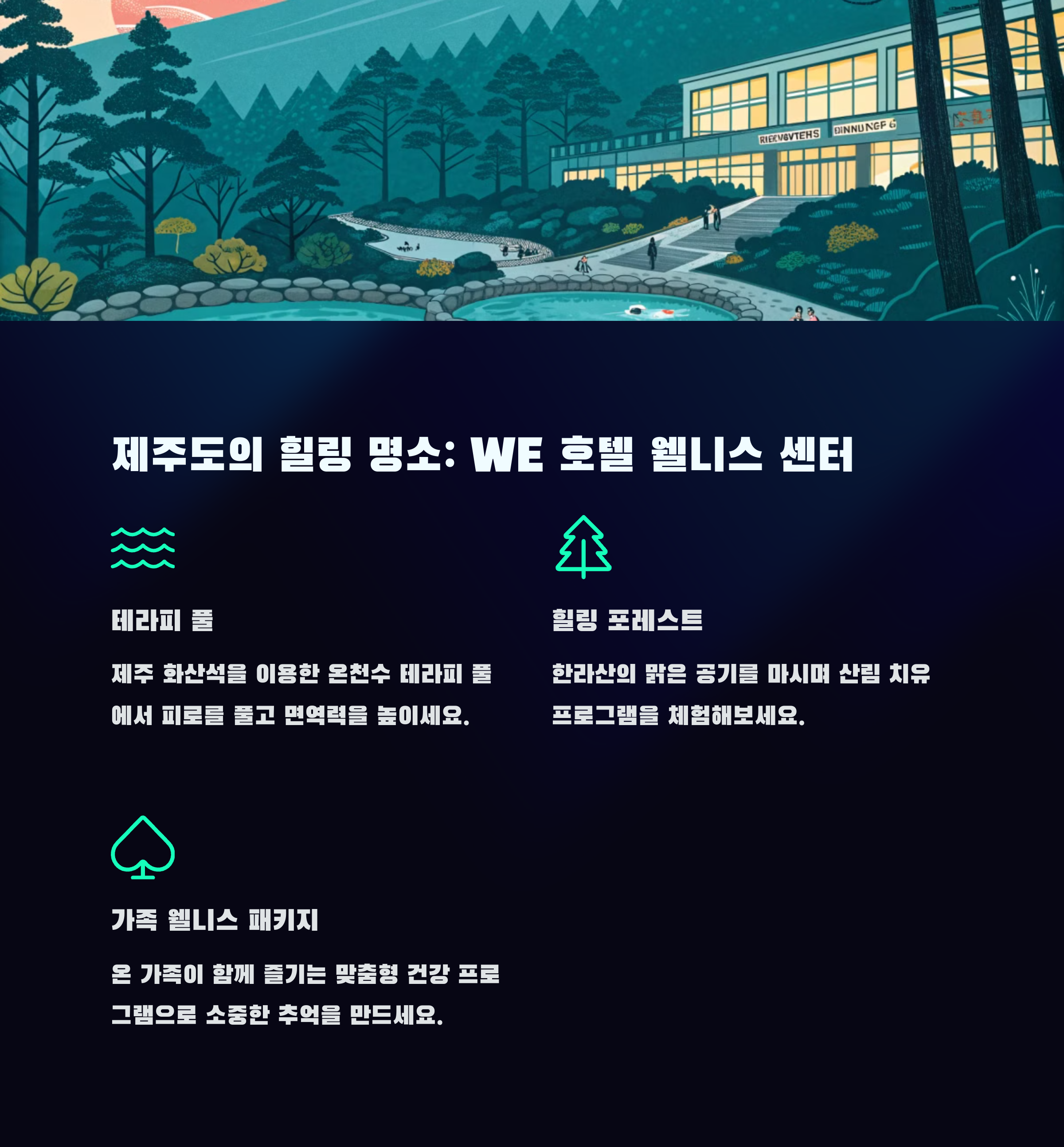 - 제주 WE 호텔: 화산암반수 수치료, 삼나무 숲 산책
