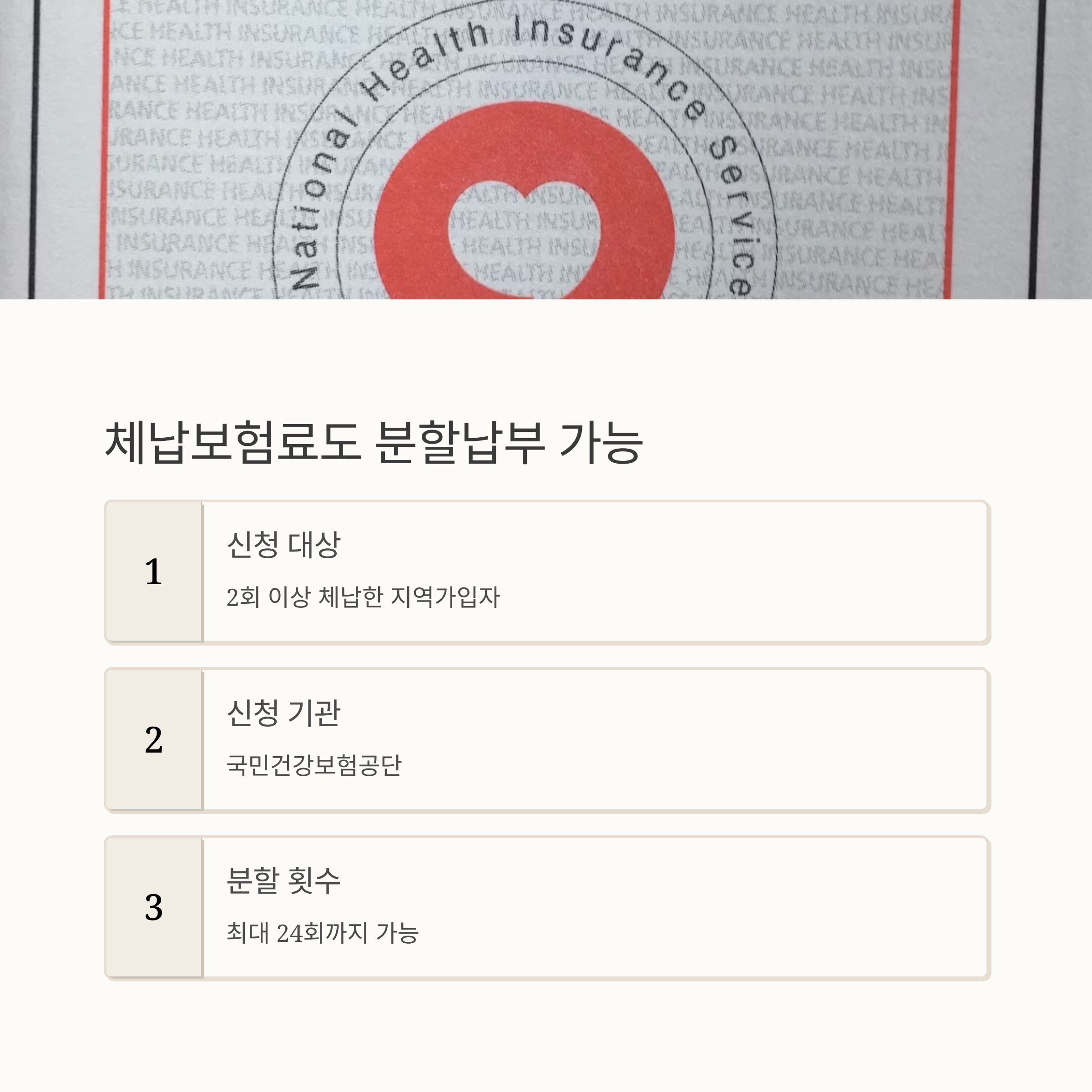 | 미납보험료 | 24회 | 있음 | 2회 이상 체납 시 신청 가능 |
