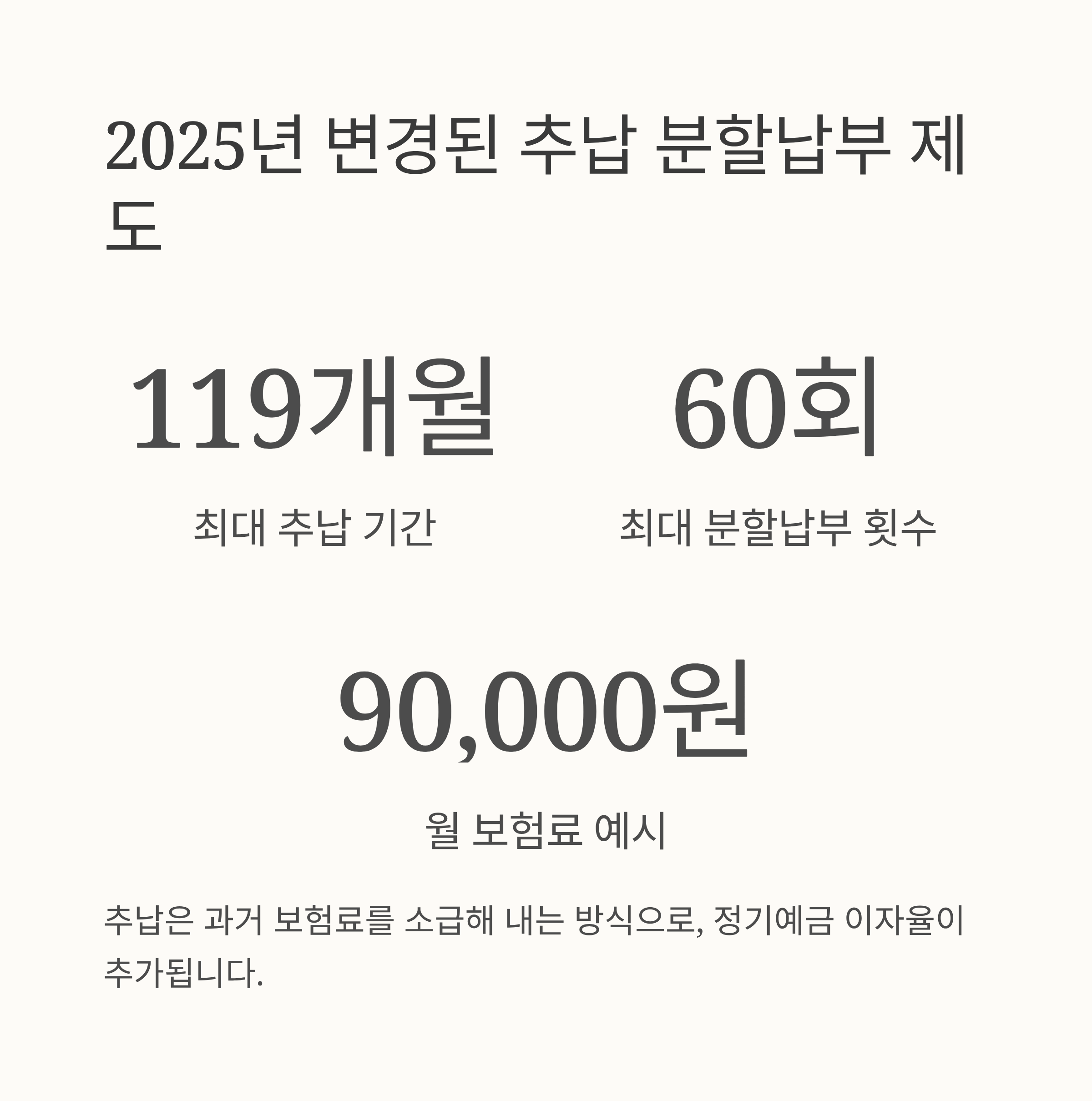 | 추후납부(추납) | 60회 | 있음(정기예금 기준) | 최대 119개월 소급 가능 |