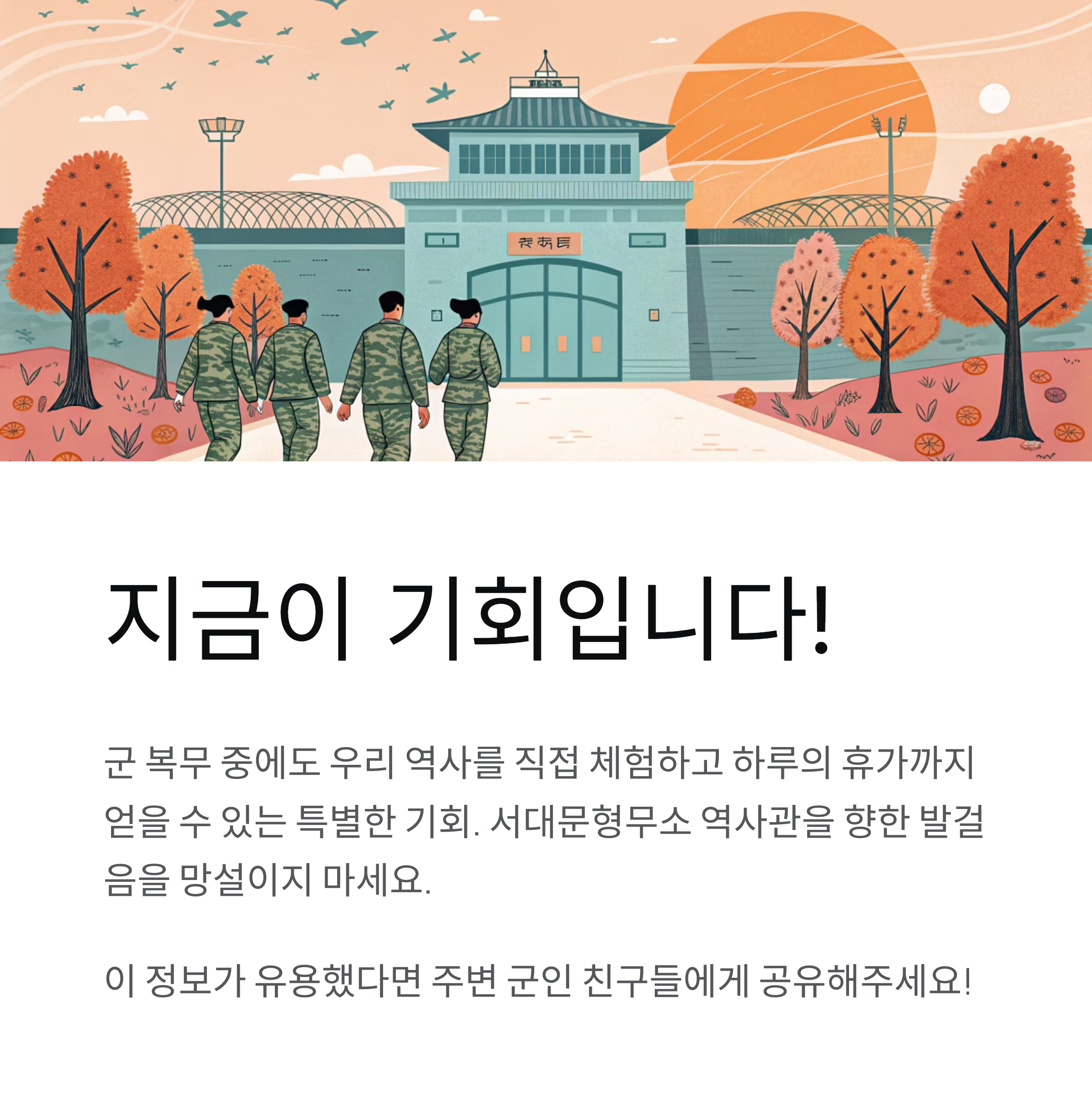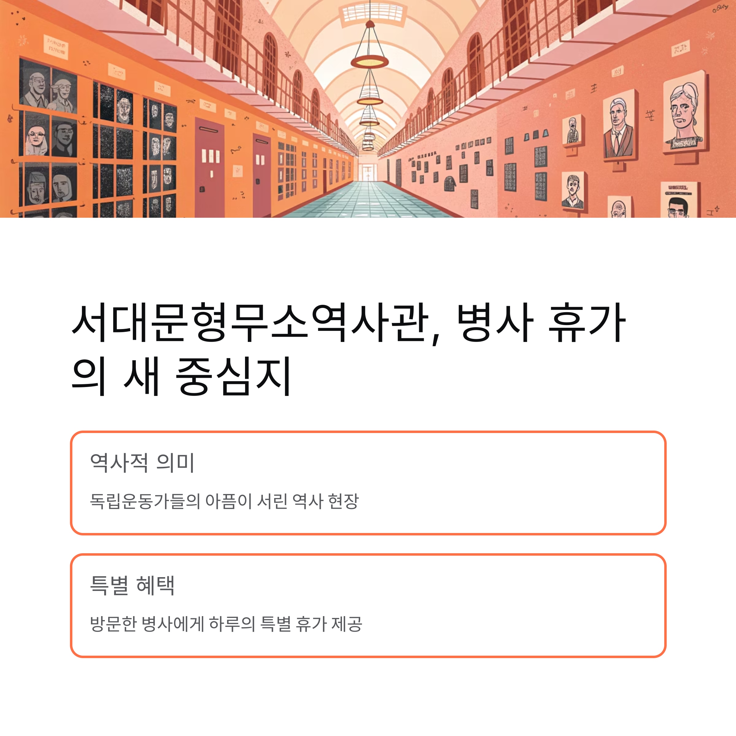 2025년 8월부터 서대문형무소역사관을 방문한 현역 병사에게 휴가 1일이 추가로 주어지는 특별한 제도가 시행됩니다. 서울 서대문구와 국방부가 협력해 ‘현충시설 견학 보상제도’의 범위를 확대한 이번 정책은 병사들에게는 실질적인 혜택을, 국가적으로는 역사 교육과 안보의식 강화라는 두 마리 토끼를 잡을 수 있는 계기가 될 것입니다.