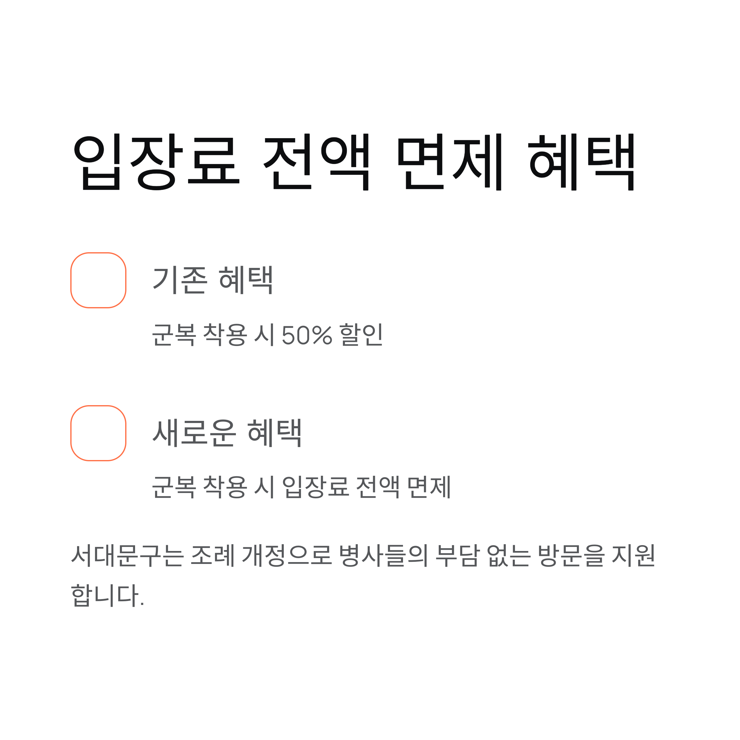 서대문구는 조례를 신속히 개정하여 병사들이 부담 없이 방문할 수 있도록 준비했습니다.