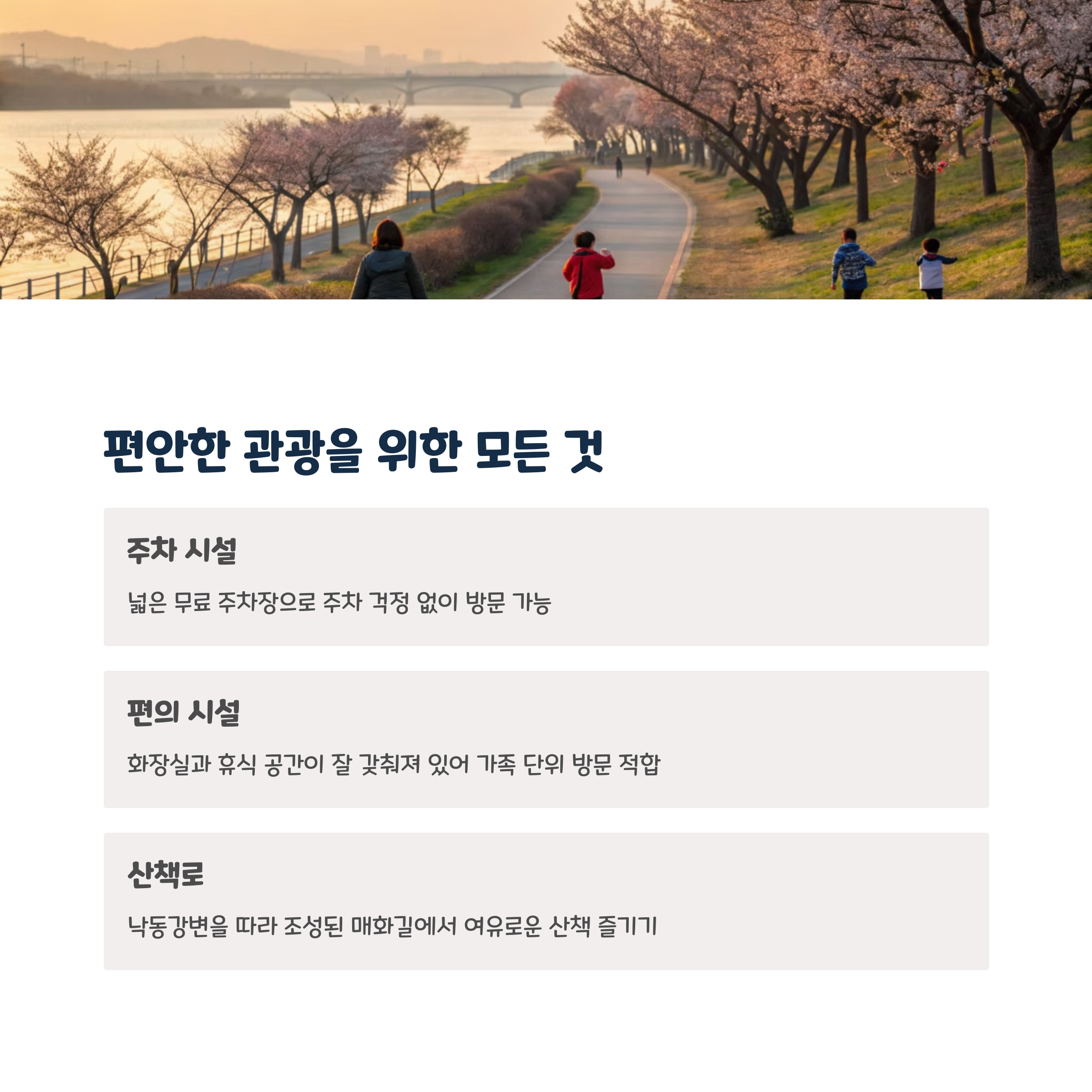 | 매화 군락지 | 역사적 의미 | 봄철 방문 |
