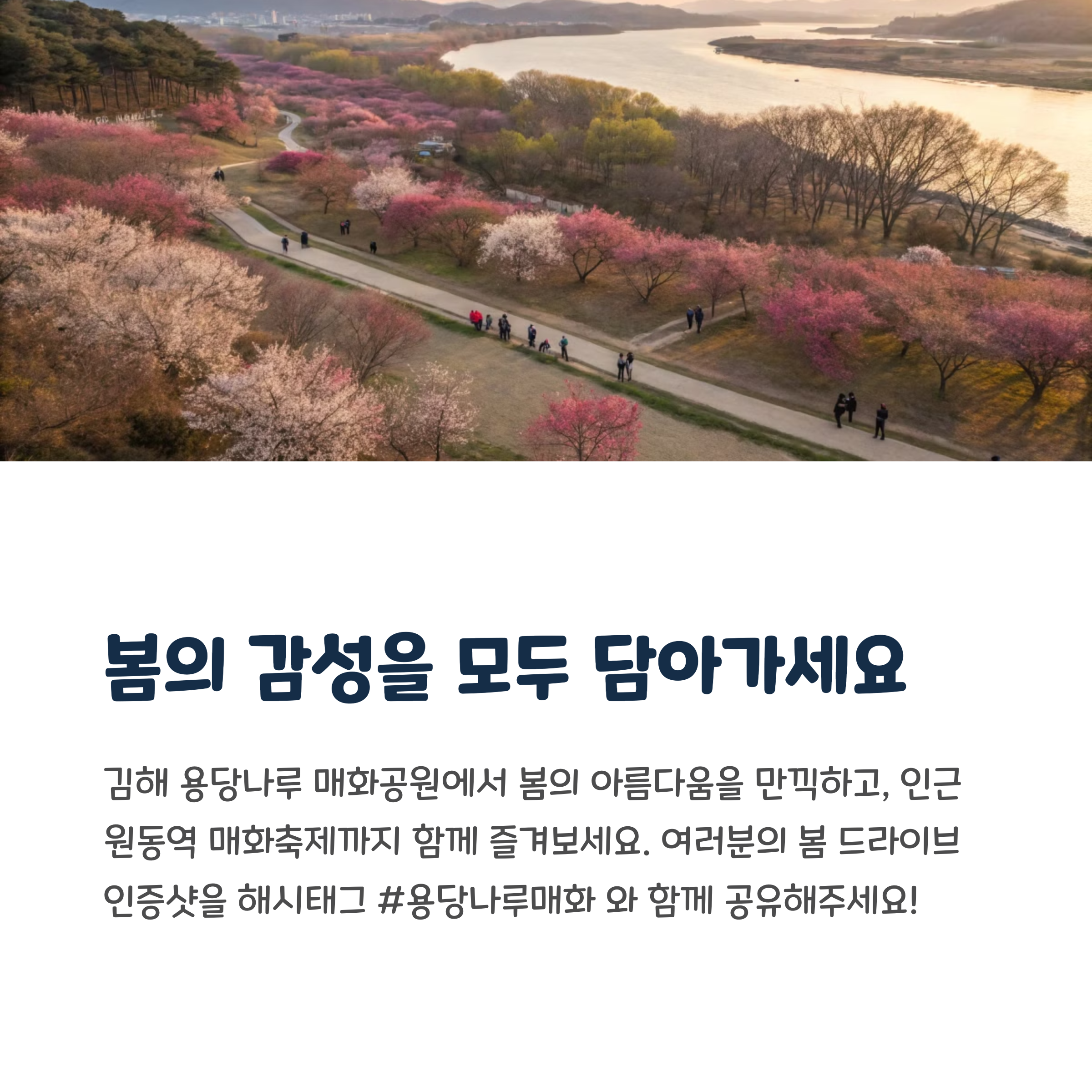 김해 용당나루 매화공원을 방문하신 적이 있나요? 여러분이 경험한 아름다운 순간이나 추천하는 여행 팁을 공유해주세요! 여러분의 이야기를 기다리고 있습니다.
