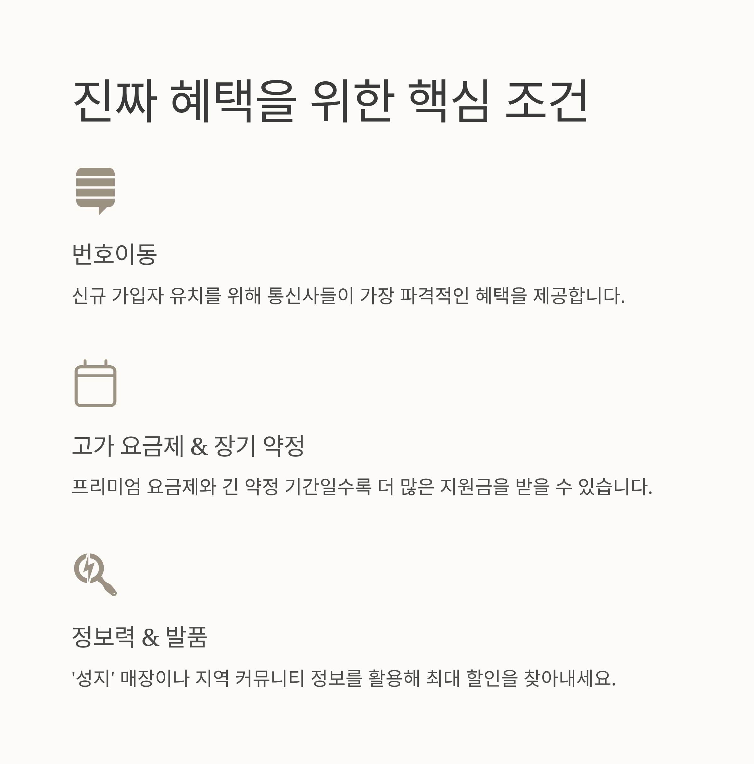 - 핵심 조건: 번호이동, 고가 요금제, 장기 약정, 그리고 정보 습득 및 발품이 혜택을 극대화하는 열쇠입니다.