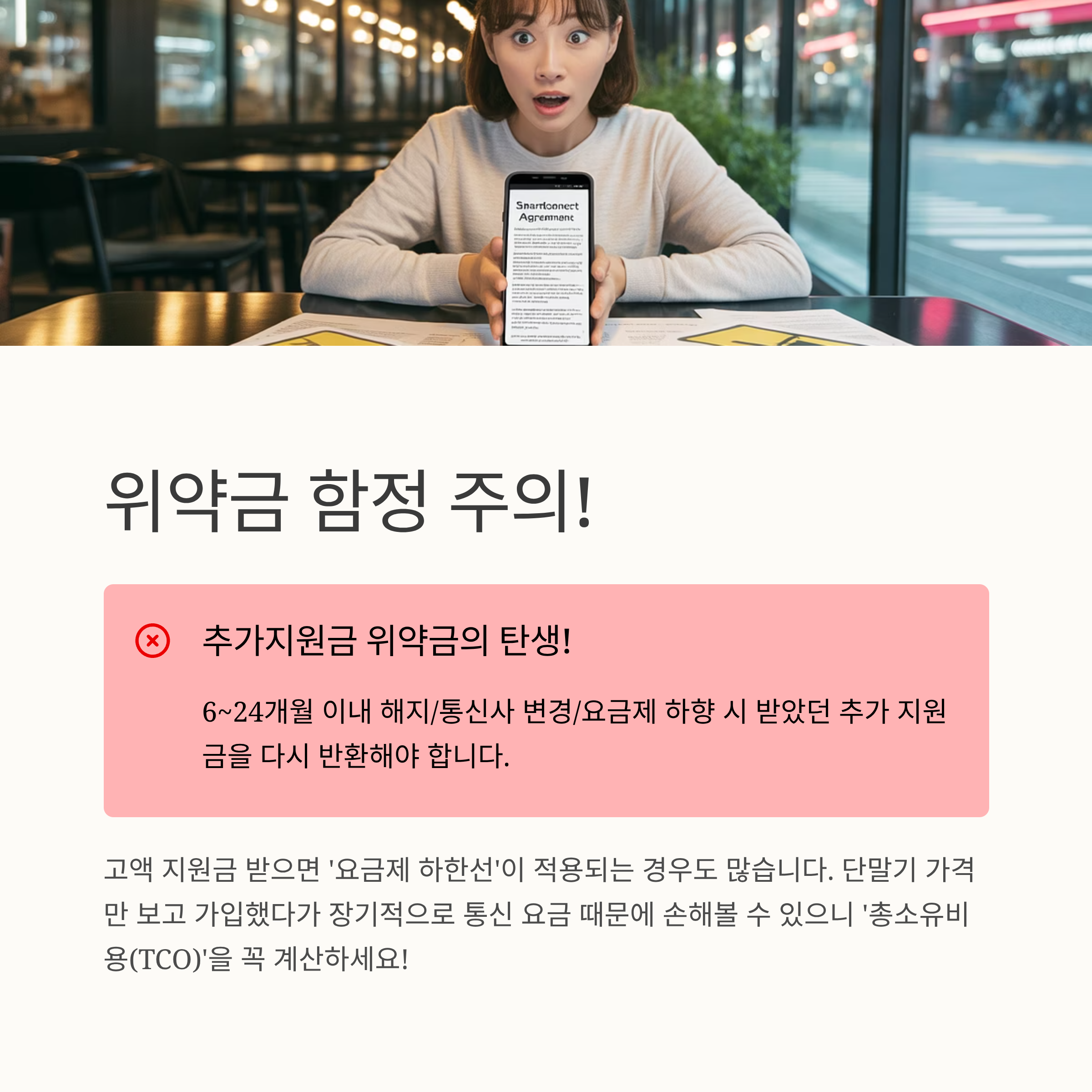 - 위약금 및 요금제 하한선 주의: 추가 지원금, 차액정산 위약금, 요금제 하한선 등 약관의 '쥐도새도 모르는 속 약정'을 반드시 확인해야 합니다.