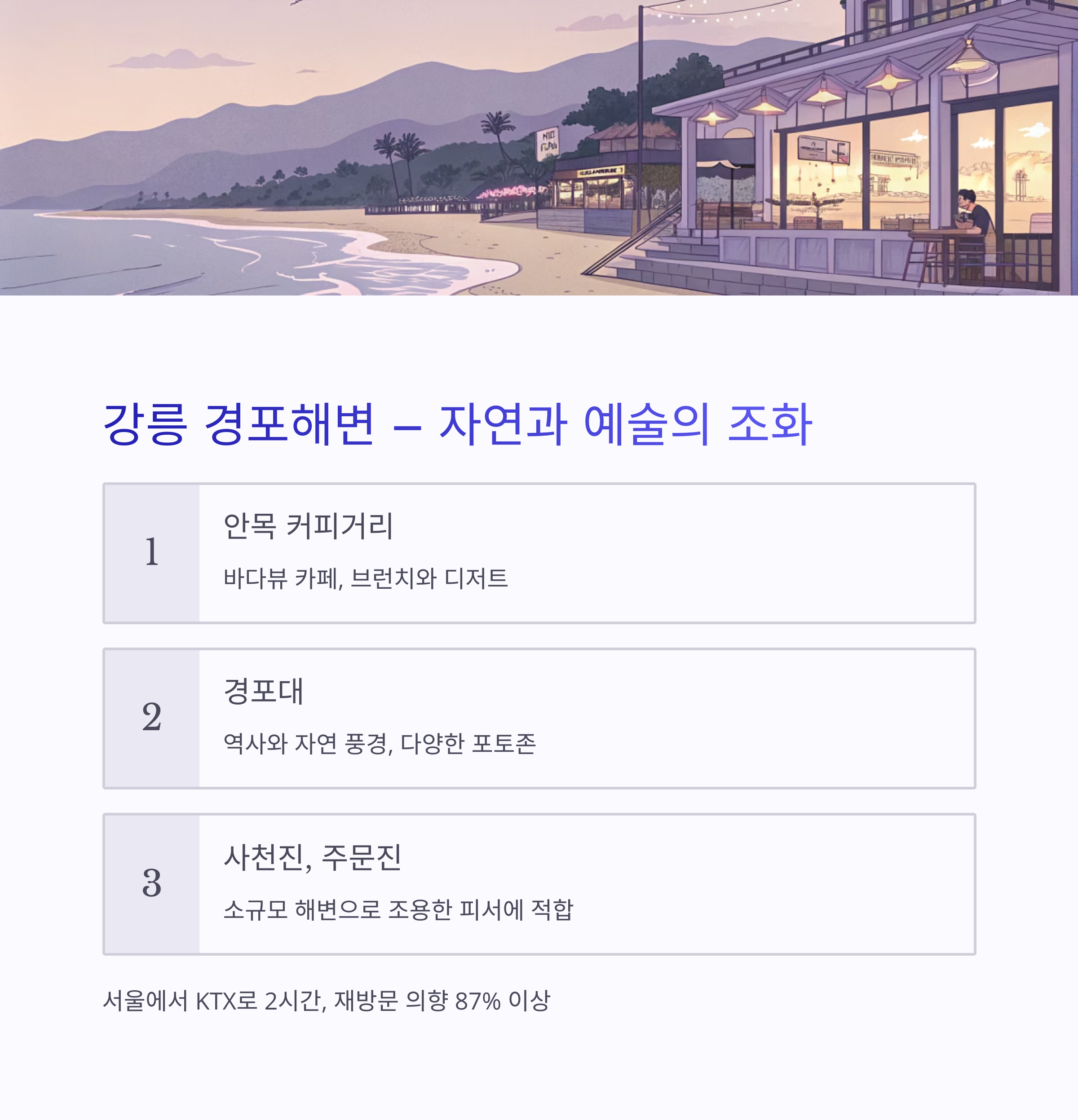 서울에서 KTX로 2시간이면 도착하는 강릉 경포해변은