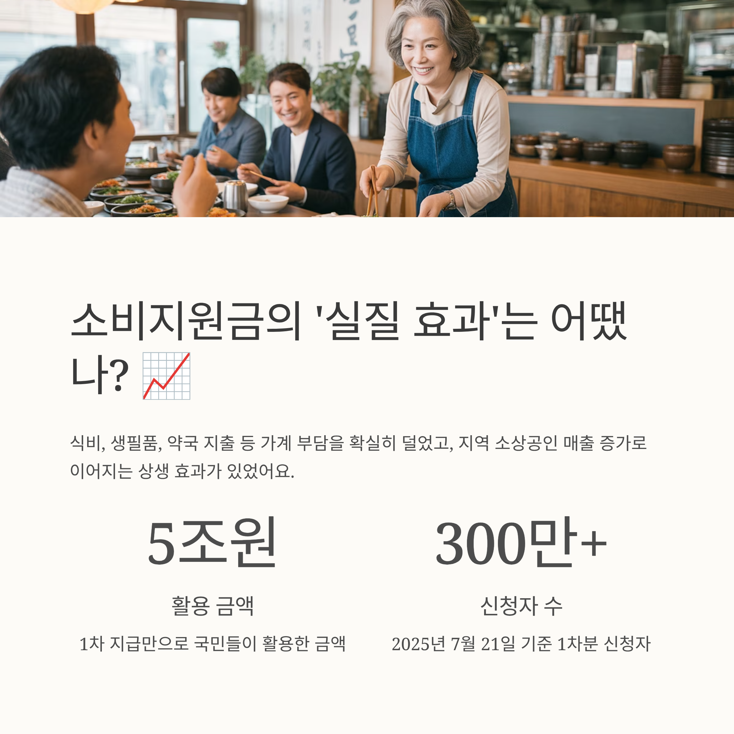 - 실질적인 효과: 가계 부담 경감, 지역 소상공인 매출 증대, 물가 상승 대응 효과 탁월. 1차 지급만으로 약 5조원 소비 활성화, 특히 농어촌 지역에 큰 도움.