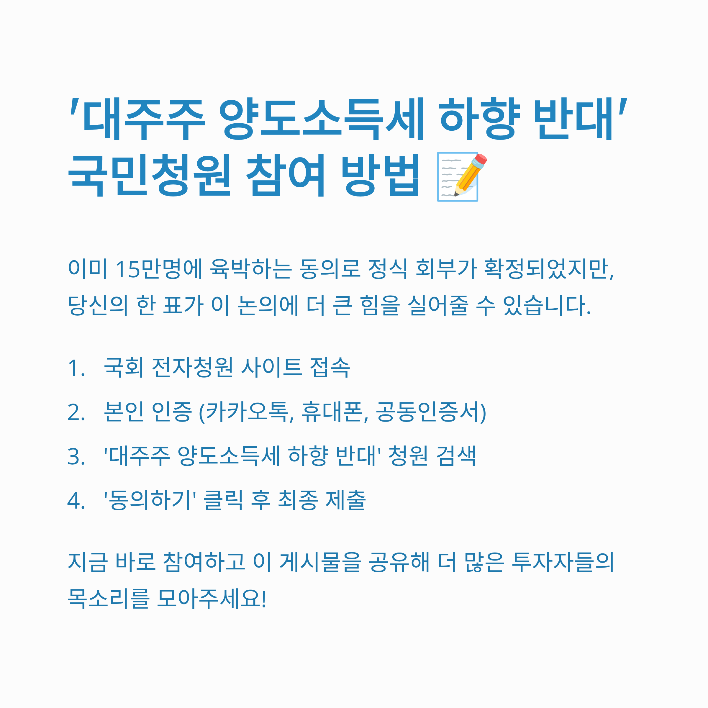 '대주주 양도소득세 하향 반대' 국민청원 참여 방법 📝