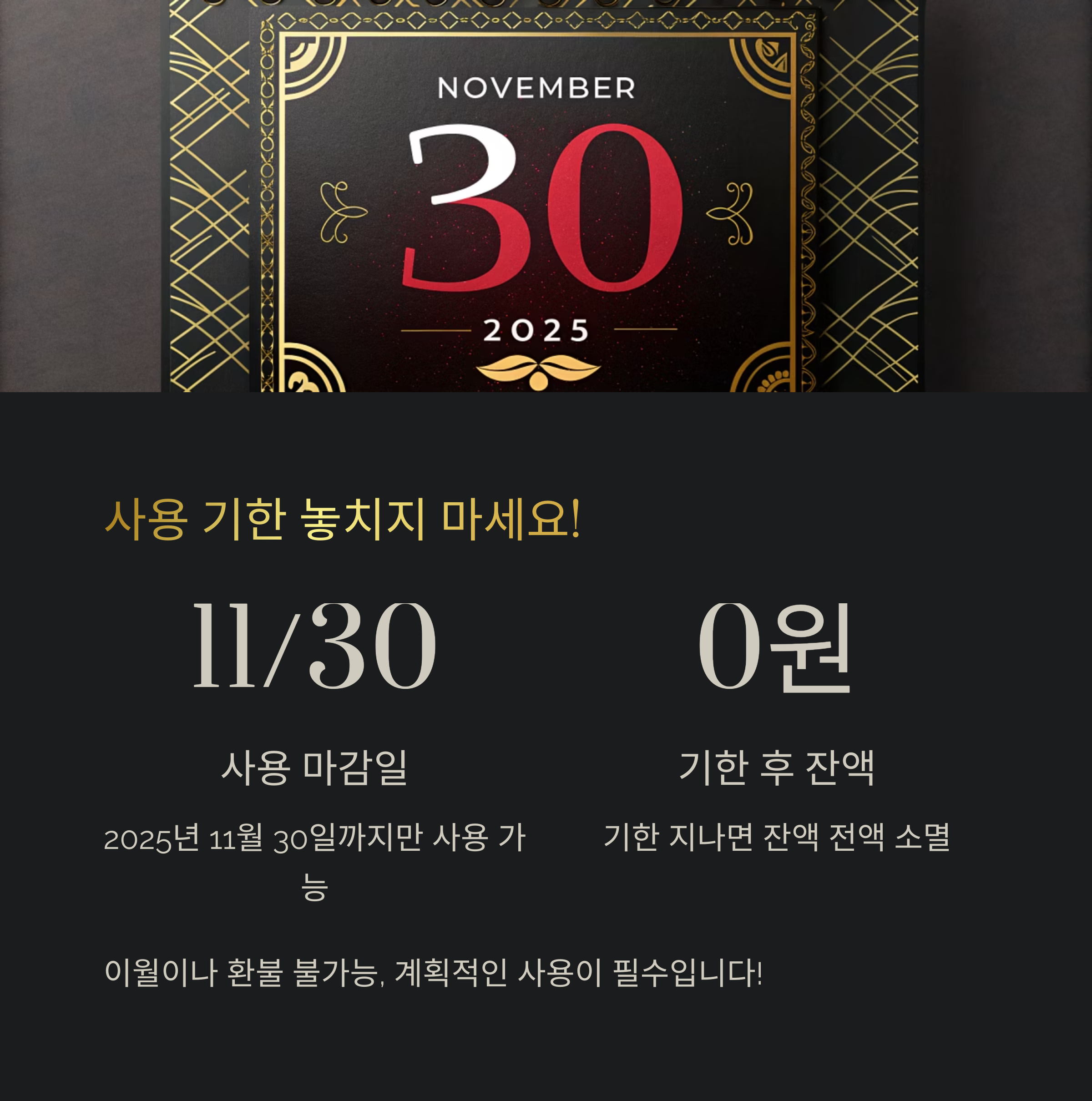 이월이나 환불은 일절 불가능하므로, 지급 즉시 계획적인 사용이 필수입니다.