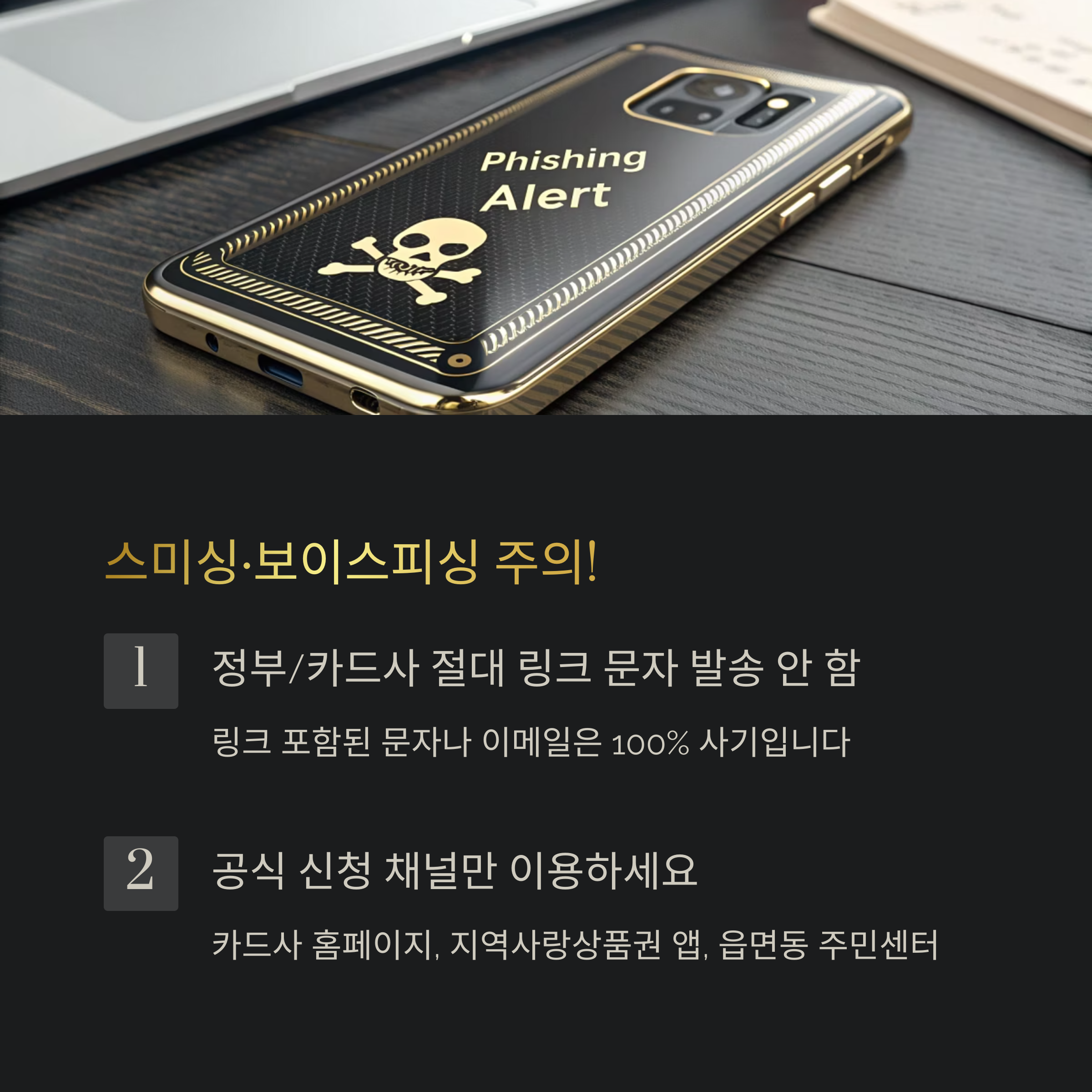 정부와 카드사는 링크가 포함된 문자나 이메일을 절대 발송하지 않으며,