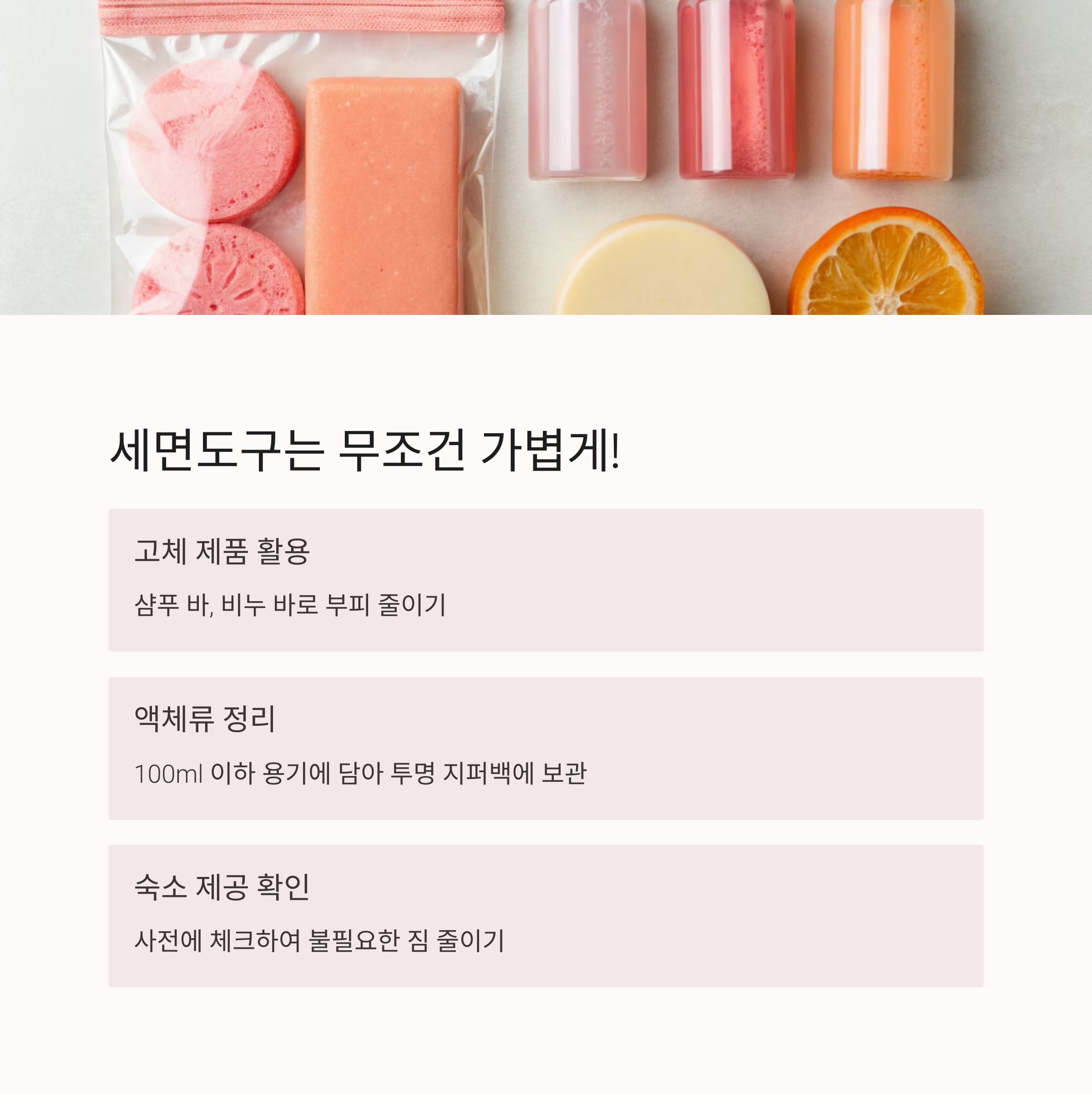 짐을 줄이고 싶다면 세면도구를 스마트하게 준비하세요.