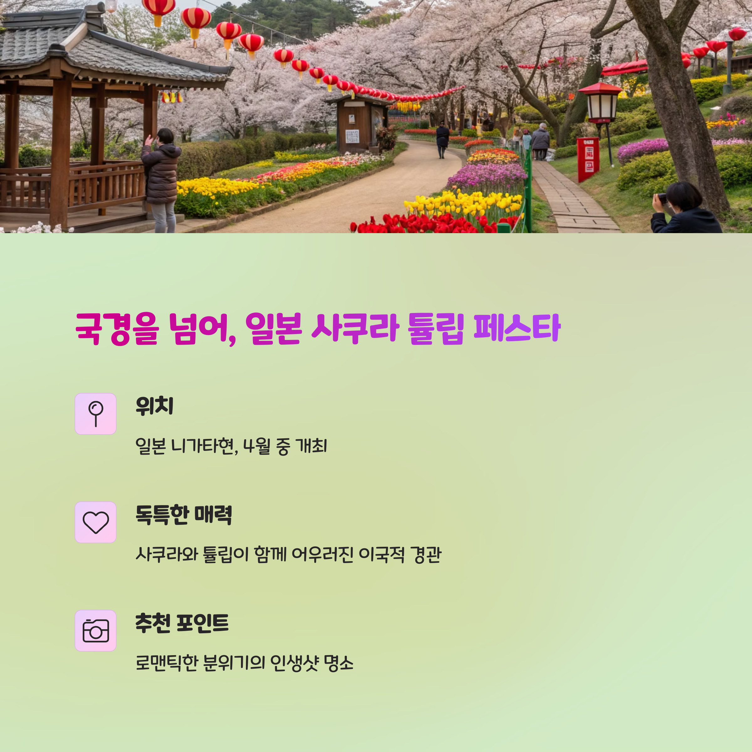 여러분은 어떤 봄꽃 축제가 가장 기대되시나요? 댓글로 봄 여행 계획을 나눠주세요! 🌷