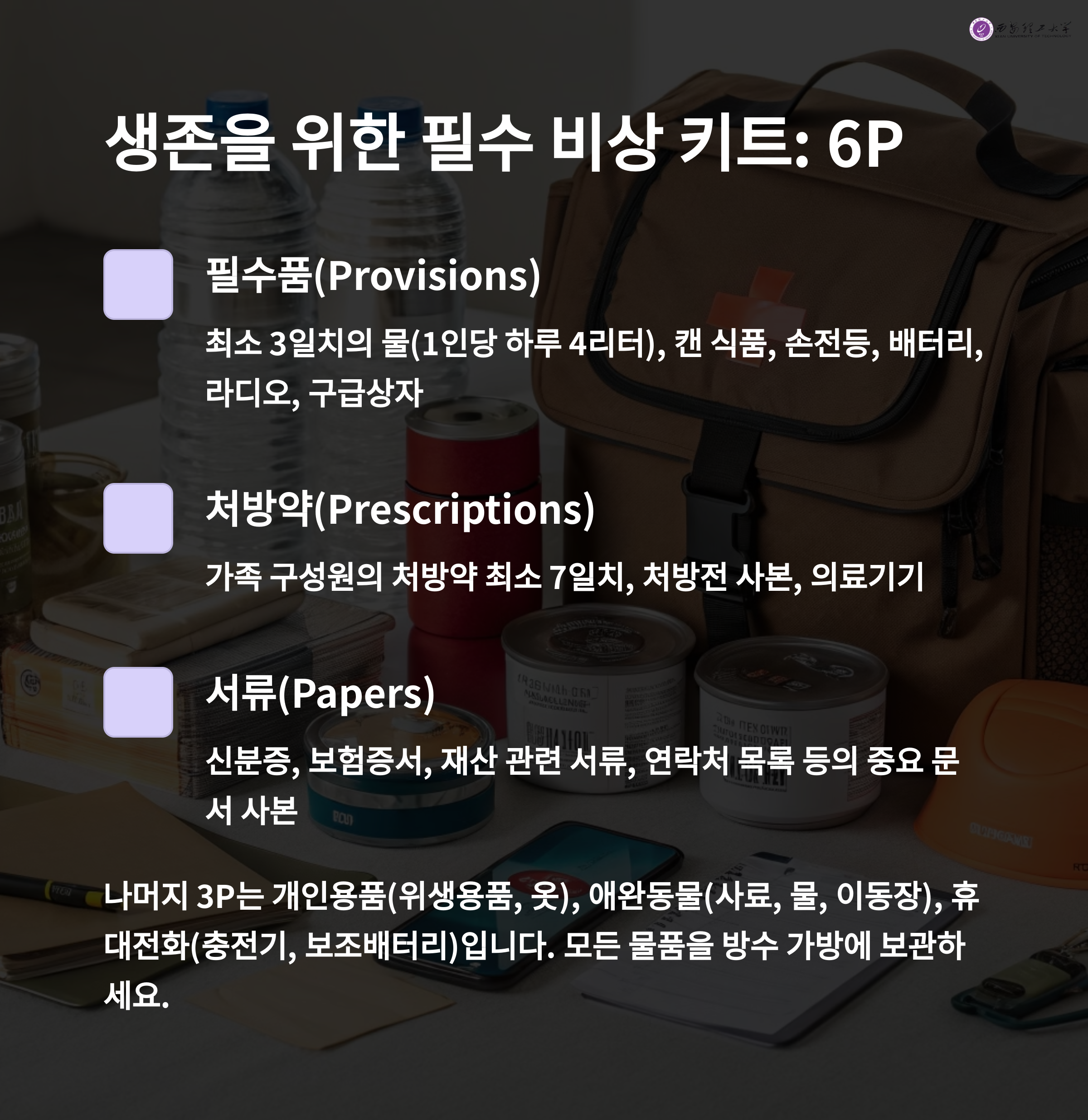 대피 시 챙겨야 할 6가지 (6P)