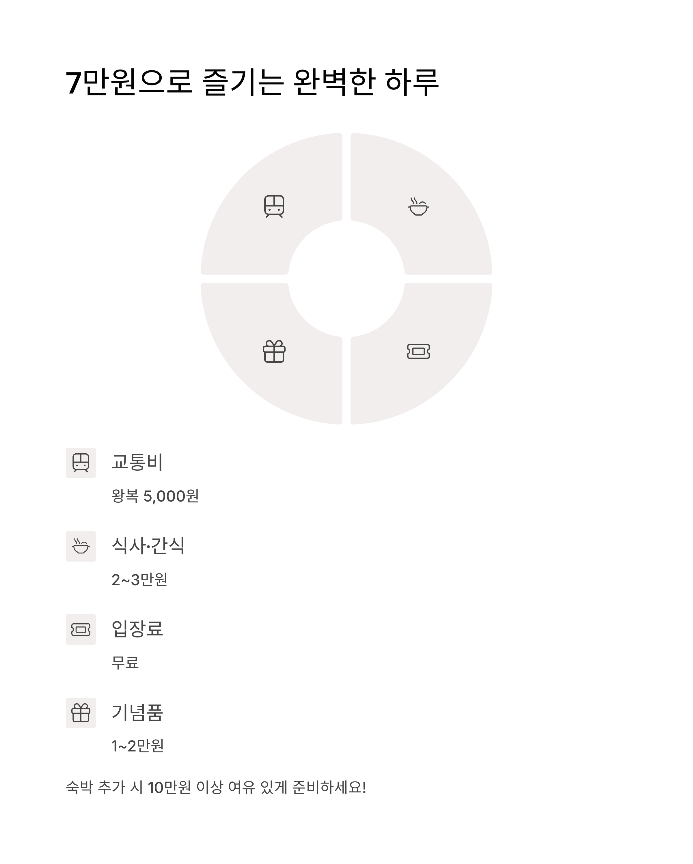 입장료 무료, 기념품 포함해도 총 7만 원 이하로 즐길 수 있는