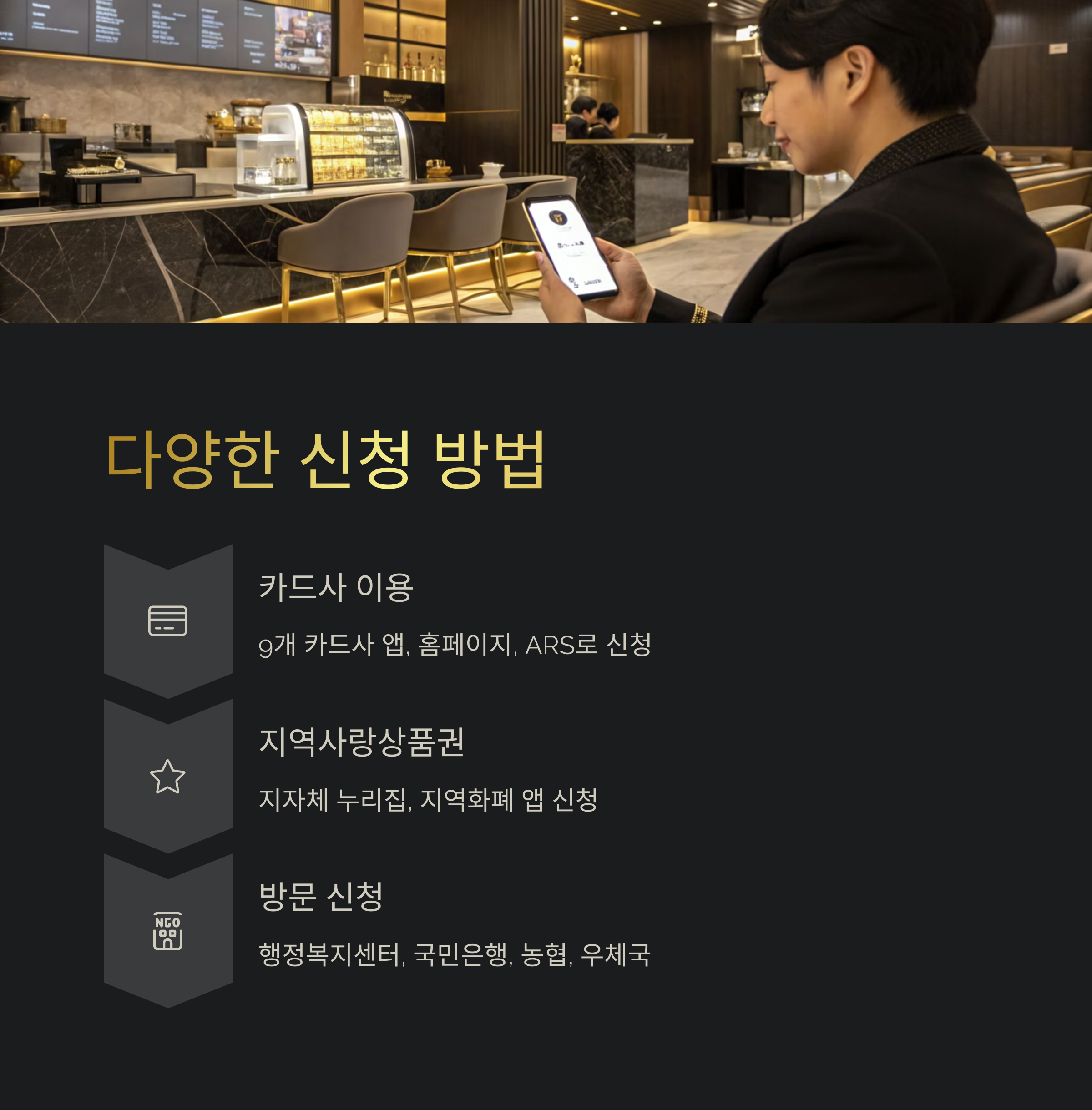 신청 방법, 카드사·지자체·행정센터 등 선택 가능