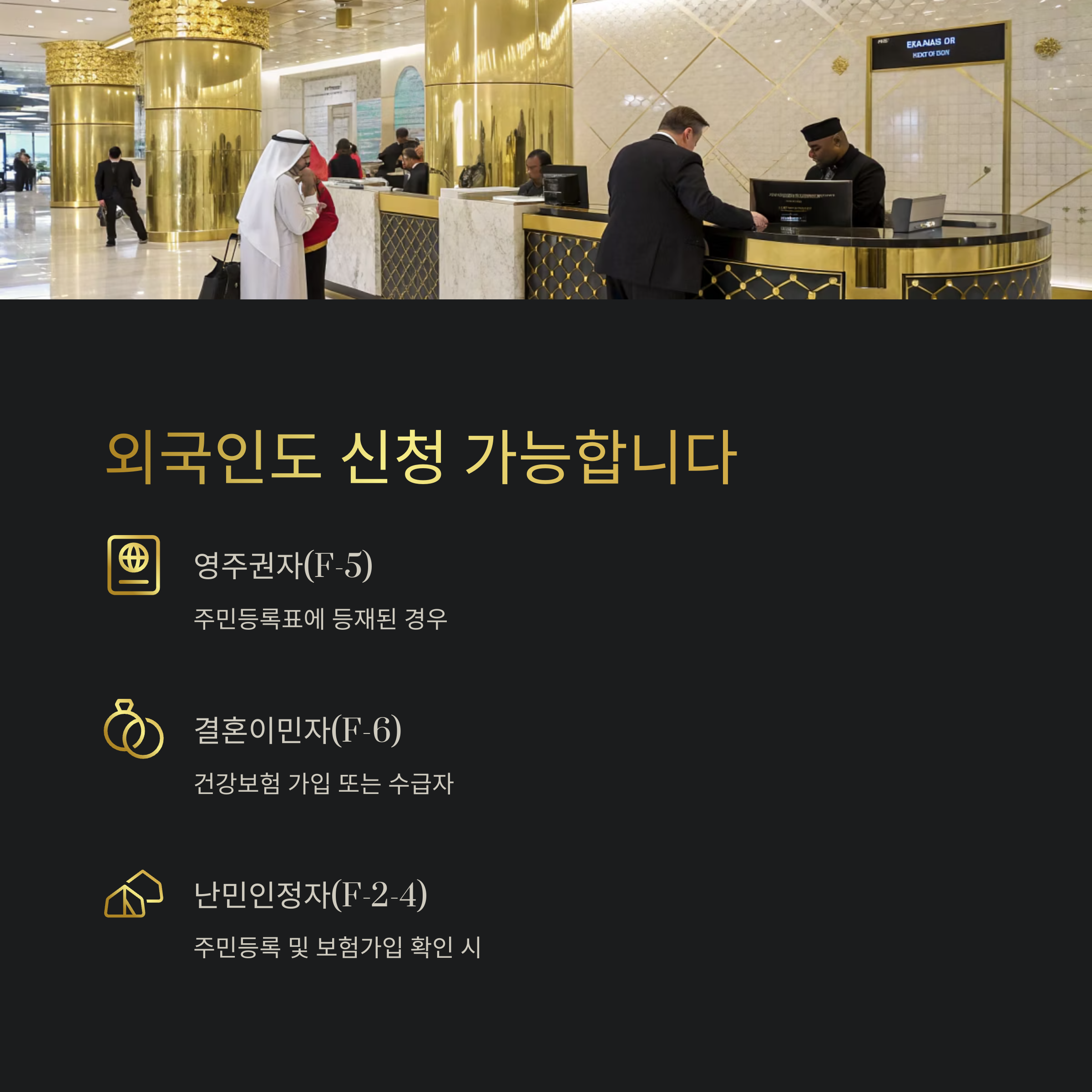 내국인 외에도 일정 조건을 충족하는 외국인도 신청 가능합니다.