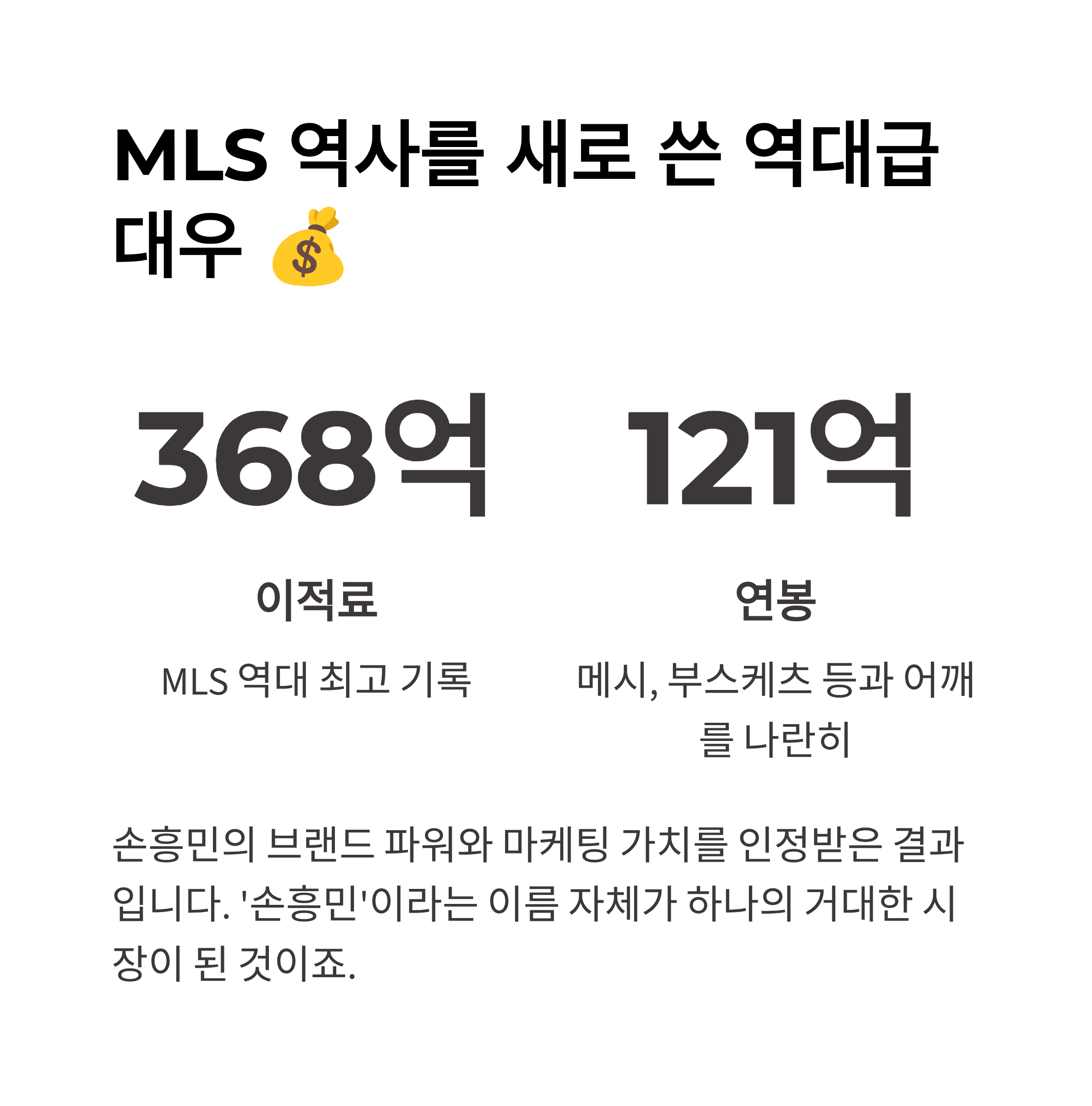 이번 이적이 손흥민 선수의 커리어에, 그리고 한국 축구와 MLS의 위상에 어떤 영향을 미칠지 정말 기대가 되네요! 😊