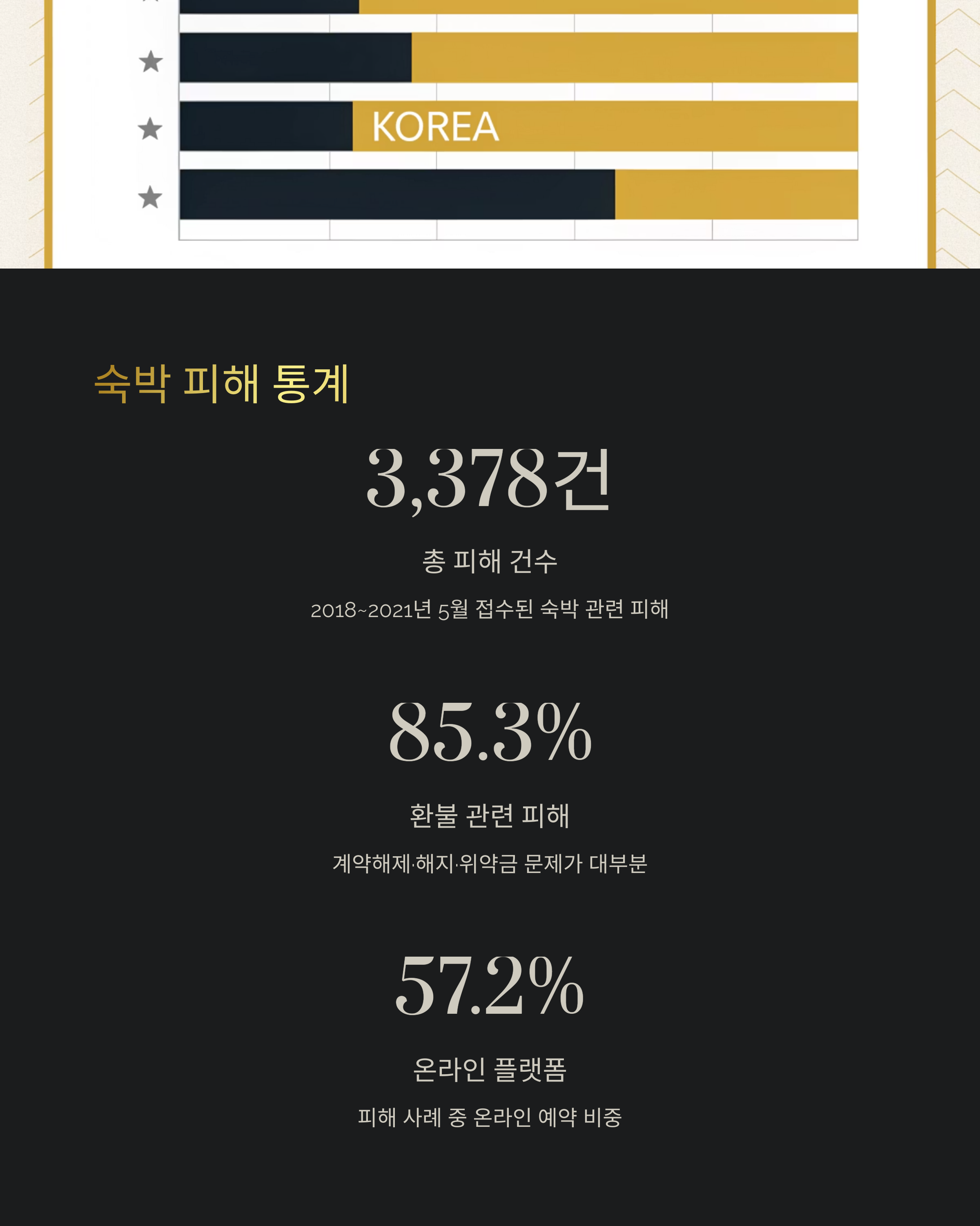 - 피해 사례의 57.2%가 온라인 플랫폼을 통한 예약