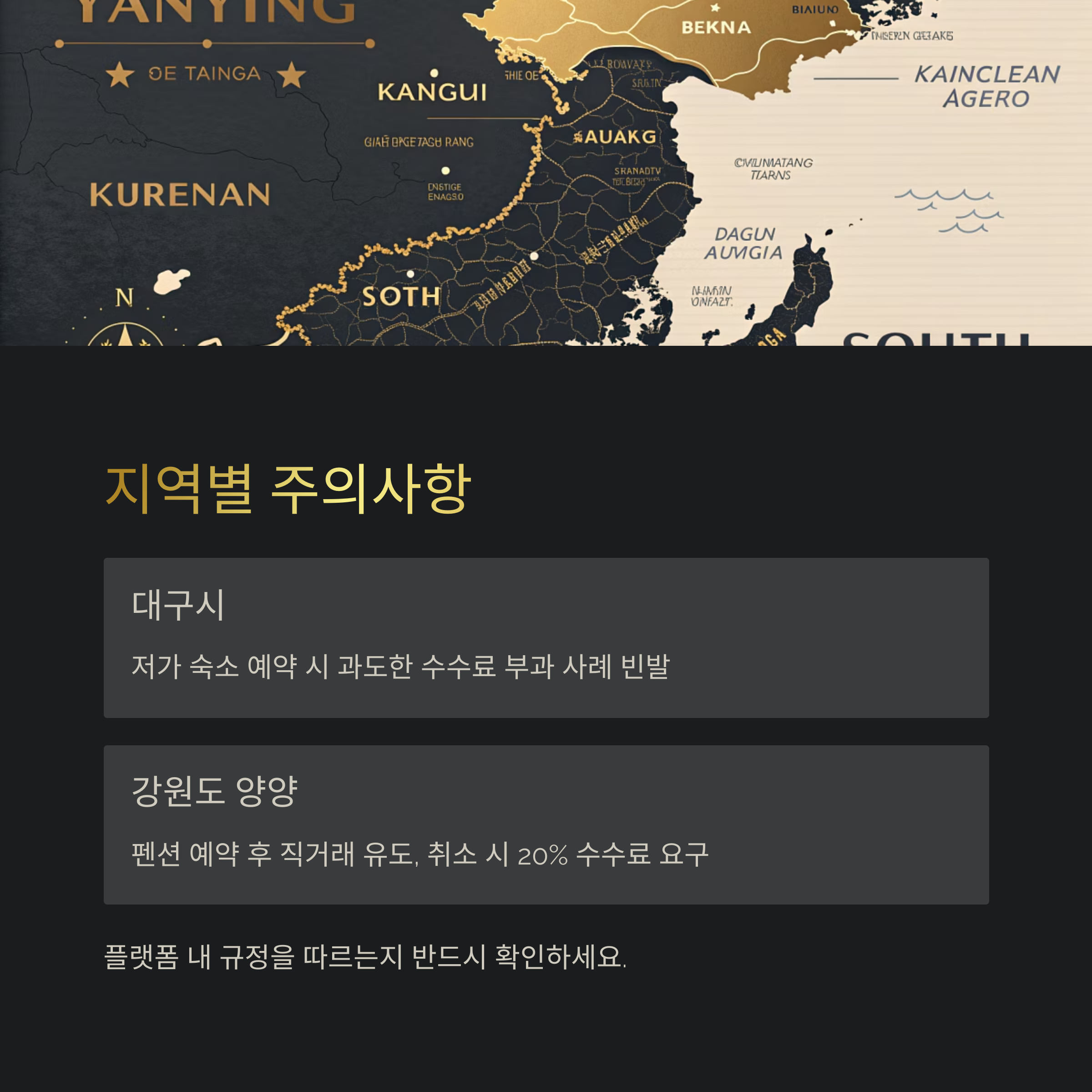 - 강원도 양양: 펜션 예약 후 직거래 유도, 취소 시 20% 수수료 요구