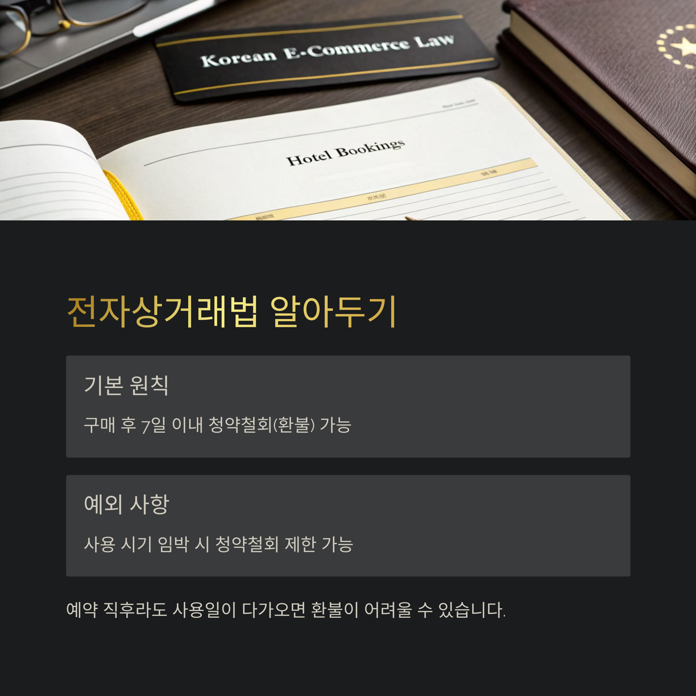 "예약 직후라도 사용일이 다가오면 환불이 어려울 수 있다는 점, 꼭 기억하세요."