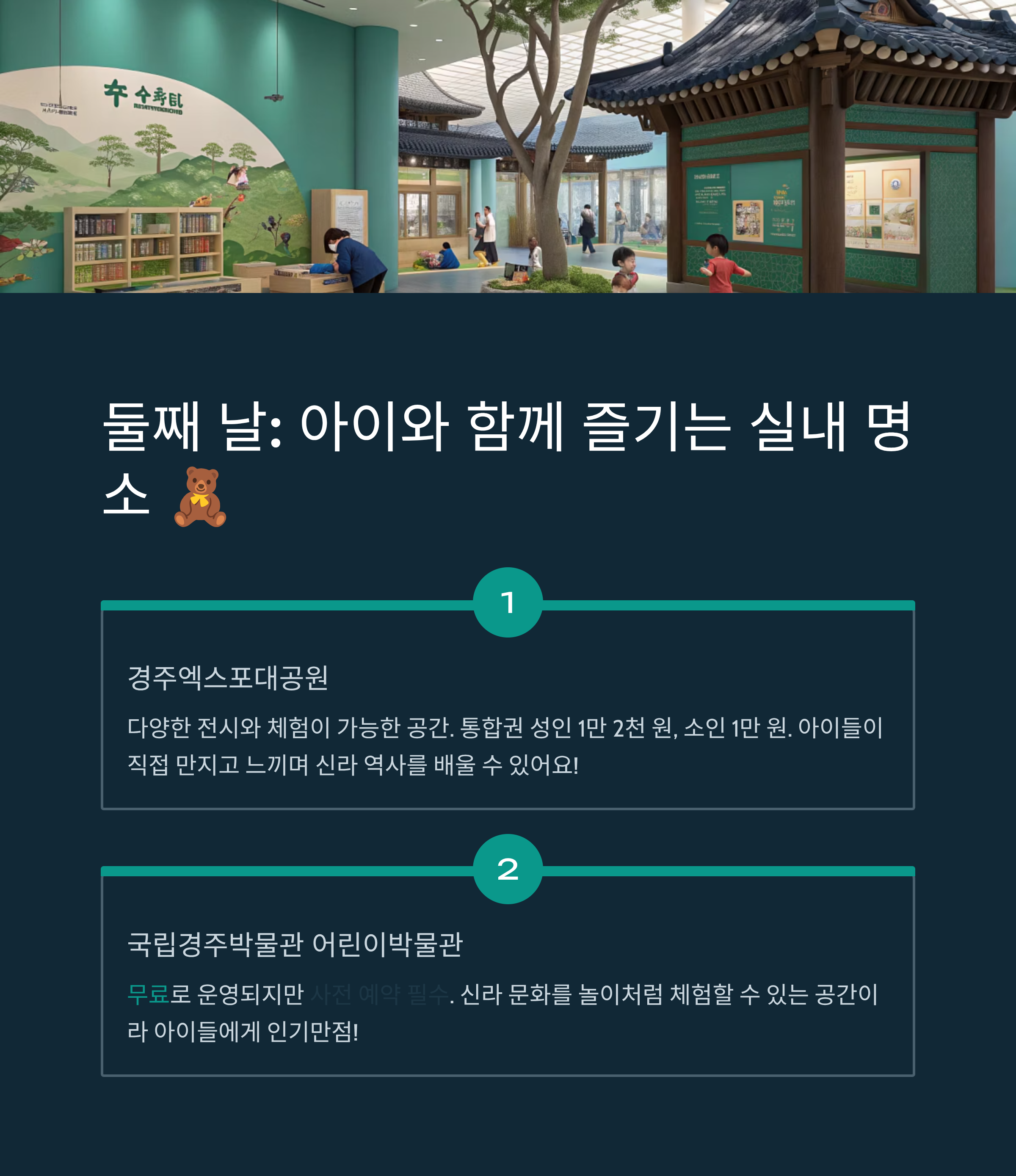 둘째 날: 아이와 함께 즐기는 경주 실내 명소 🧸