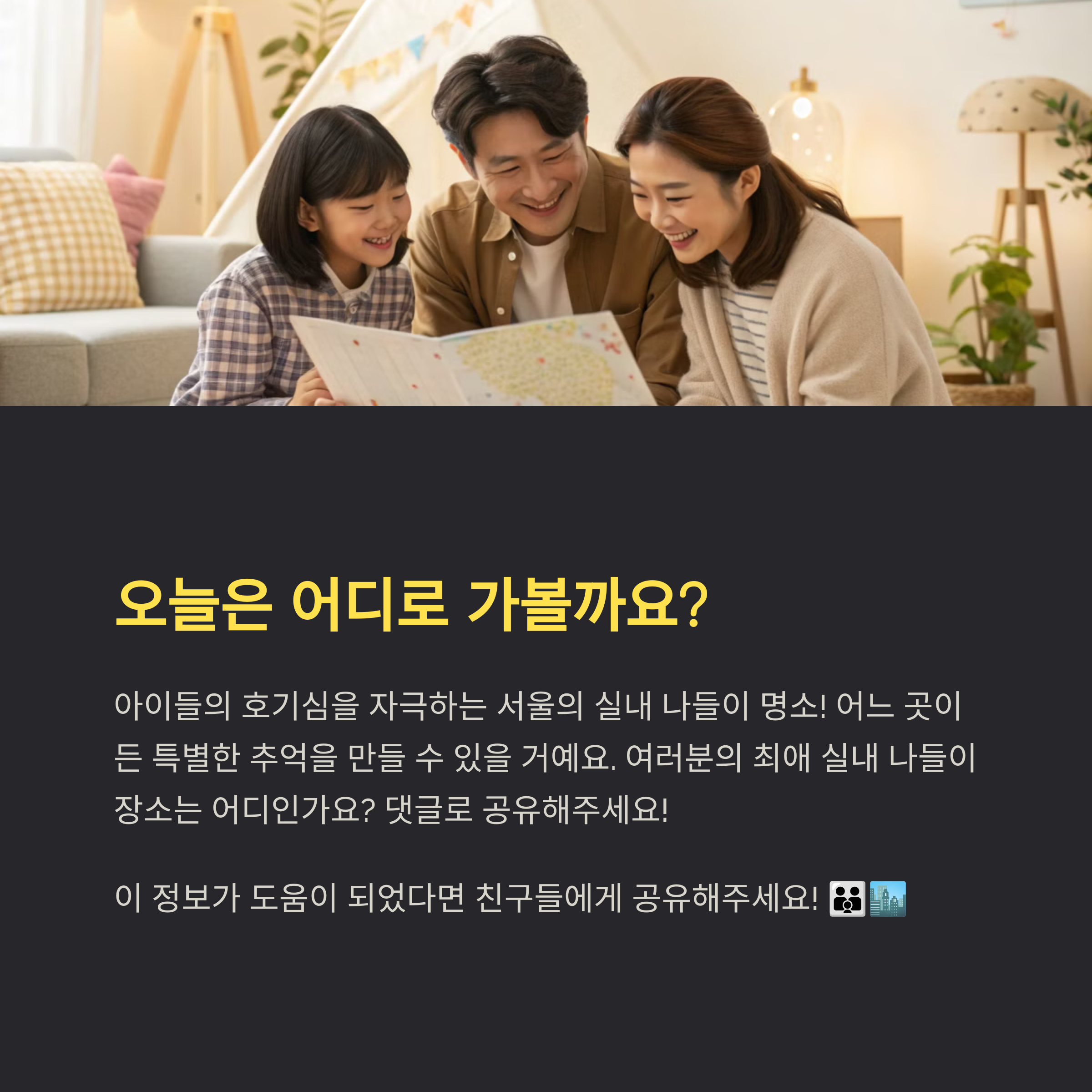 아이들과 함께 즐길 수 있는 실내 나들이 장소에 대한 여러분의 경험과 추천을 댓글로 공유해주세요! 여러분의 소중한 의견이 다른 부모님들에게 큰 도움이 될 것입니다.