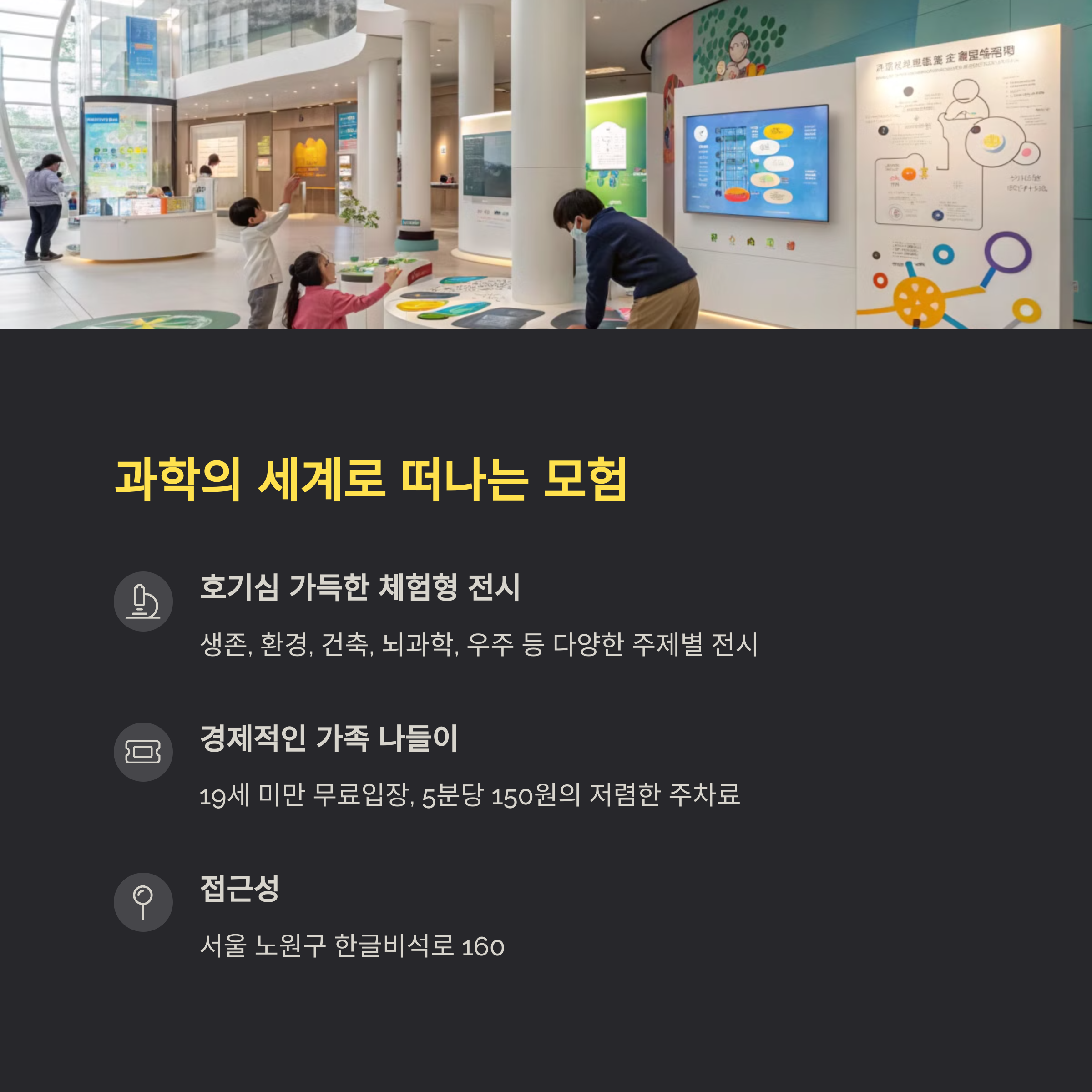 | 서울시립과학관 | 다양한 과학 체험과 전시가 있는 교육적 공간 |