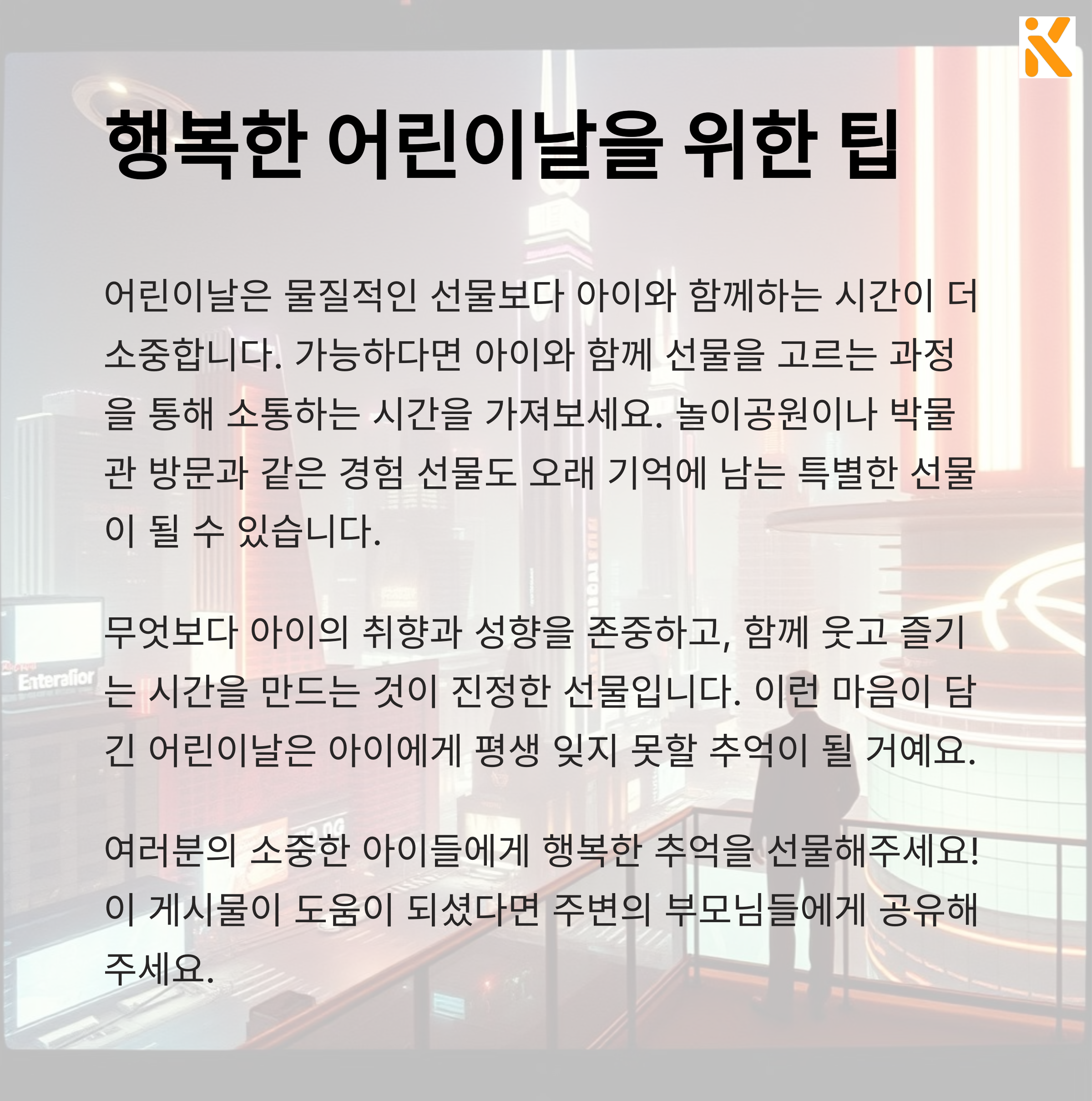 이번 어린이날 아이가 어떤 선물을 좋아했는지 댓글로 공유해주시고, 이 글이 도움이 되었다면 주변 부모님들과도 나눠주세요. 더 많은 정보를 놓치지 않고 싶다면 뉴스레터 구독도 추천드립니다!