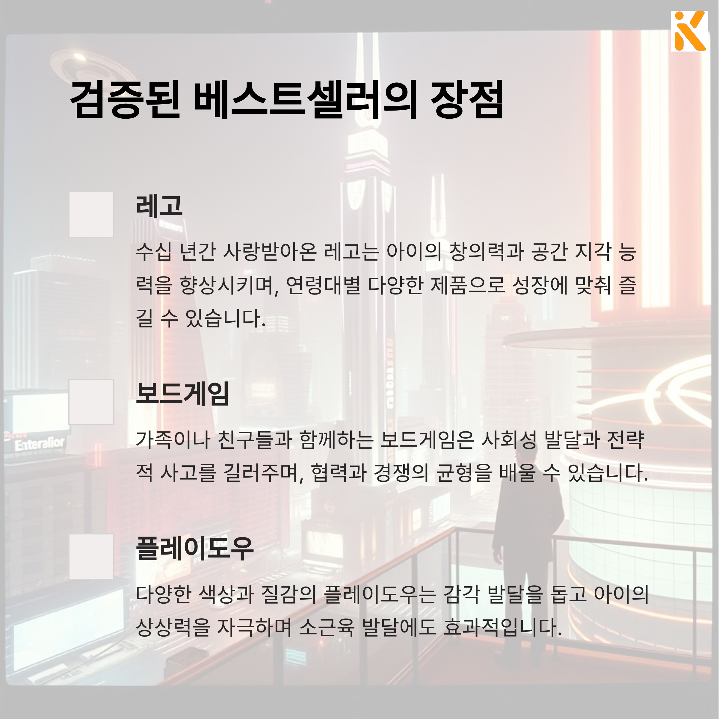 어린이날 선물 베스트셀러는 오랜 시간 동안 검증된 제품들이 많아요. 대표적인 제품으로는 레고 시리즈, 캐릭터 인형, 보드게임 등이 있습니다. 이 제품들이 오랫동안 사랑받는 이유는 무엇일까요? 아이들의 상상력과 창의력을 키워주고, 다양한 연령대가 함께 즐길 수 있기 때문이에요.