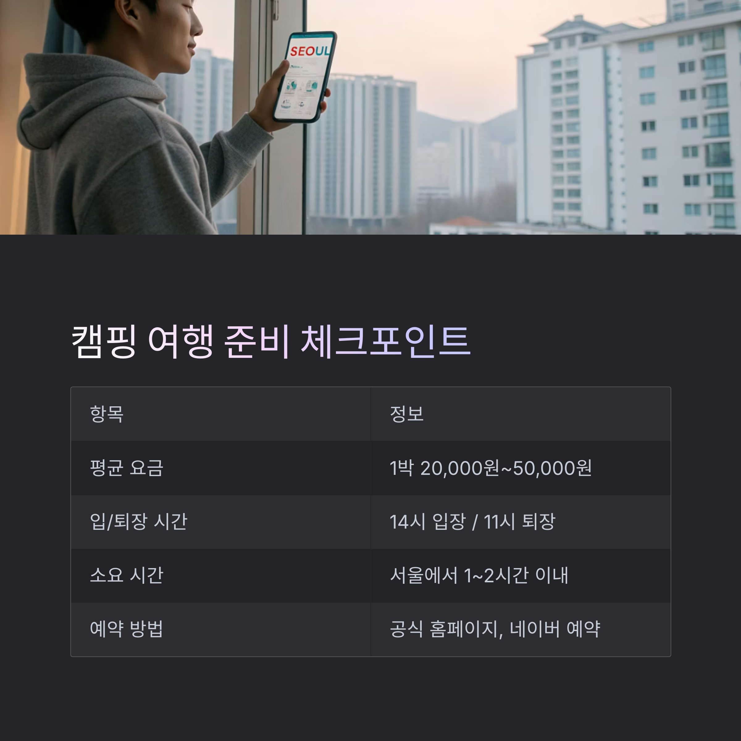 캠핑 여행 준비 체크포인트: 요금, 시간, 꿀팁