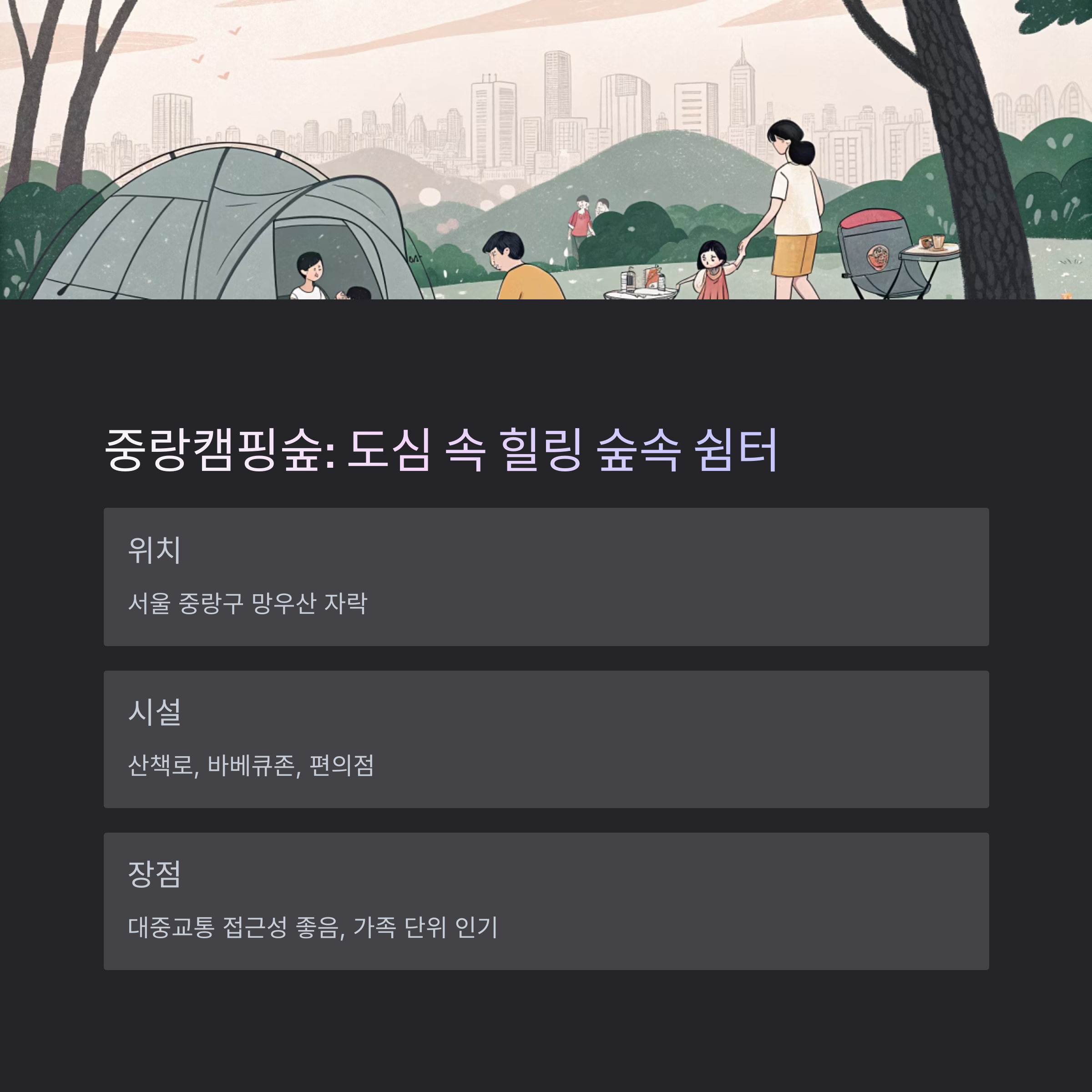 중랑캠핑숲: 도심 속 힐링 숲속 쉼터