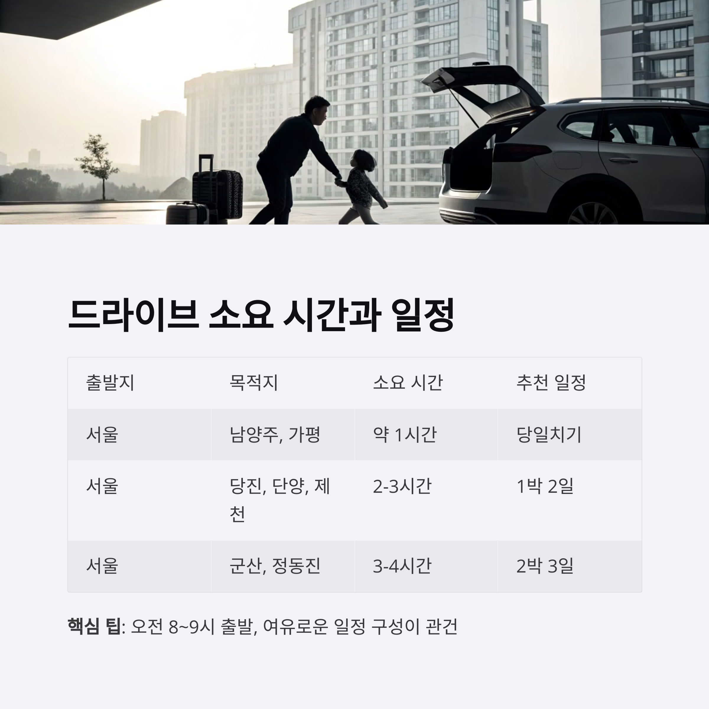 | 서울 | 남양주, 가평 | 약 1시간 | 당일치기 |