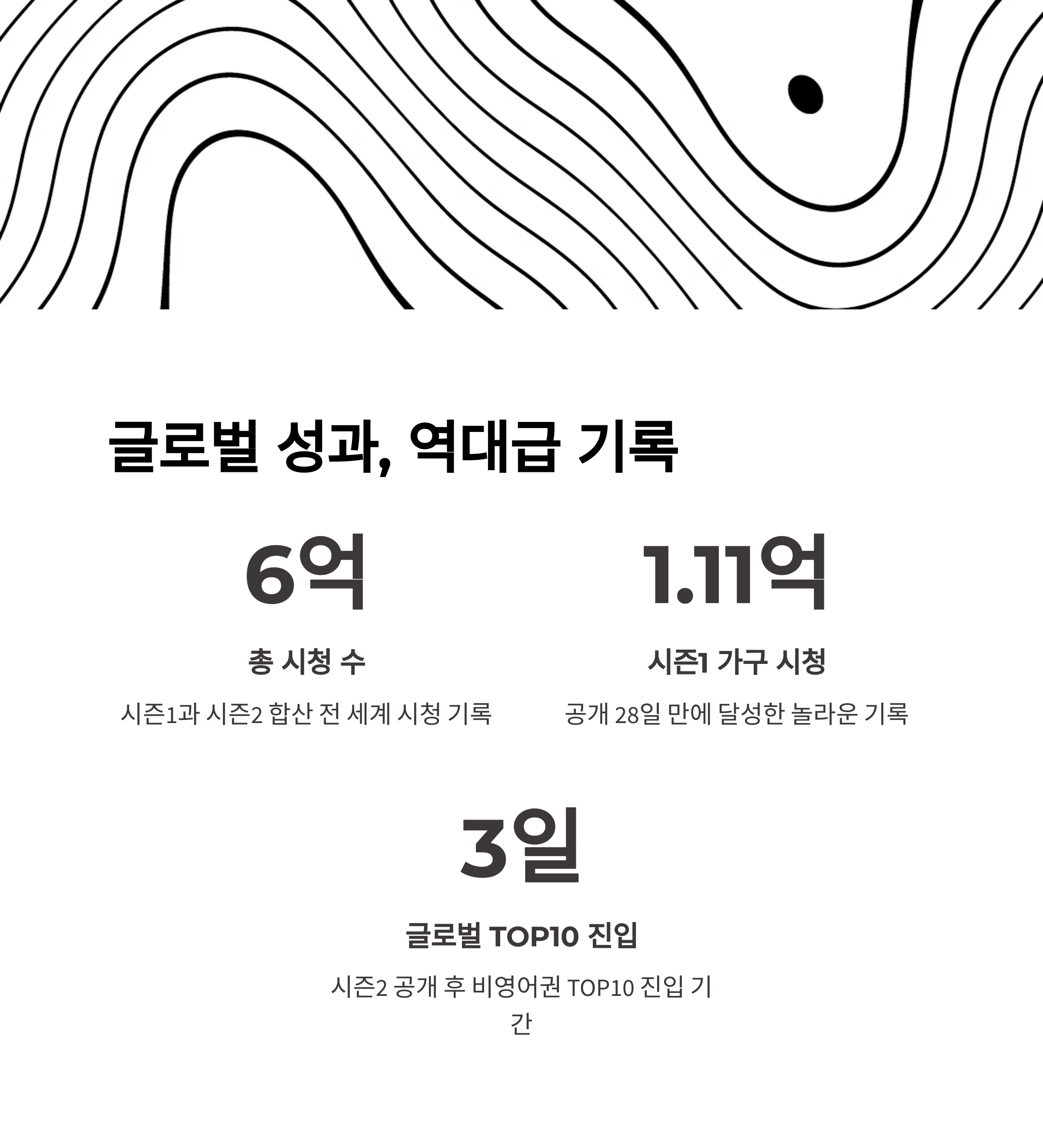 | 시즌1 | 2021년 9월 | 28일 만에 1억 1,100만 가구 시청 |