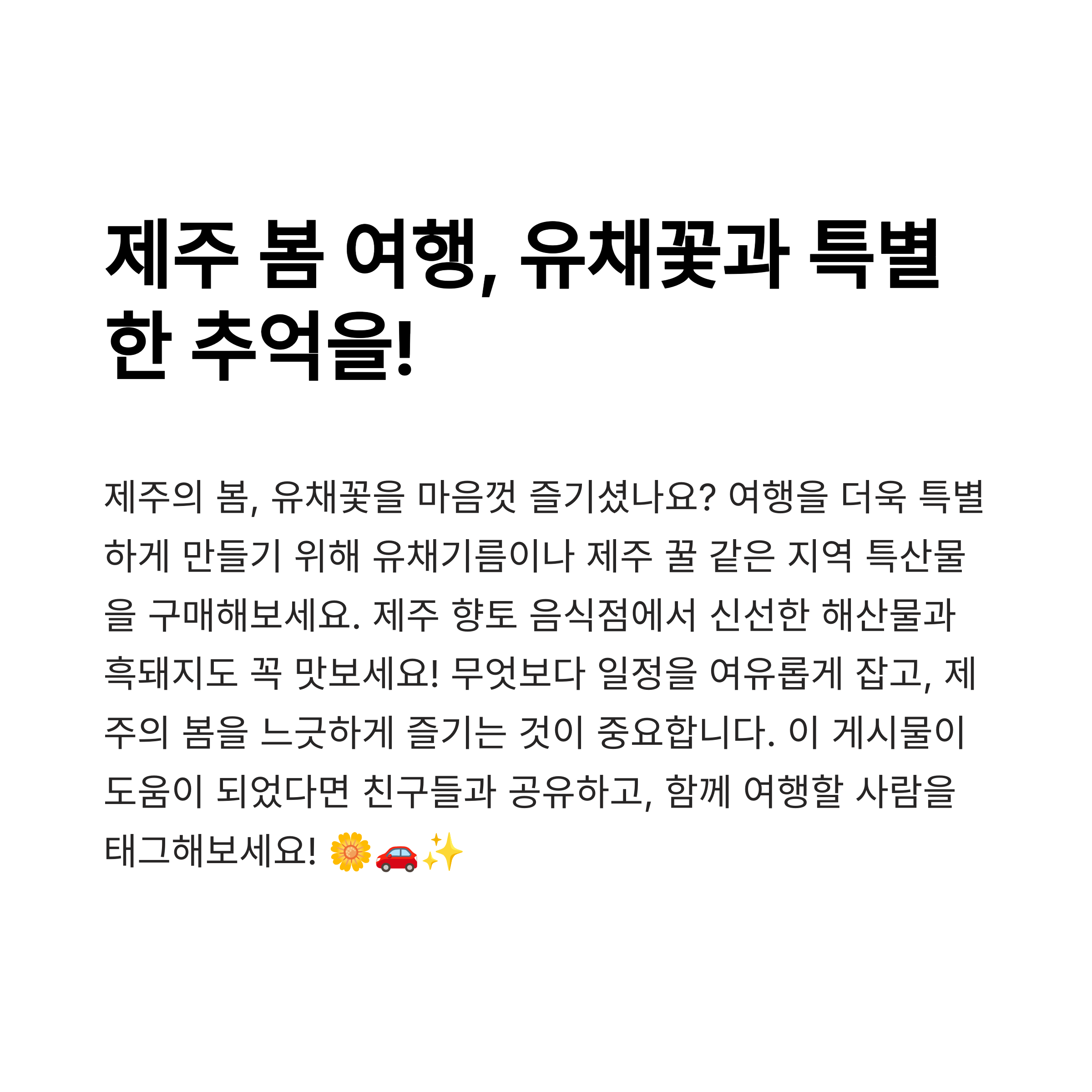 다음 포스팅에서는 제주 봄 맛집과 카페 추천으로 찾아뵙겠습니다. 그때까지 행복한 여행 되세요! 🌼