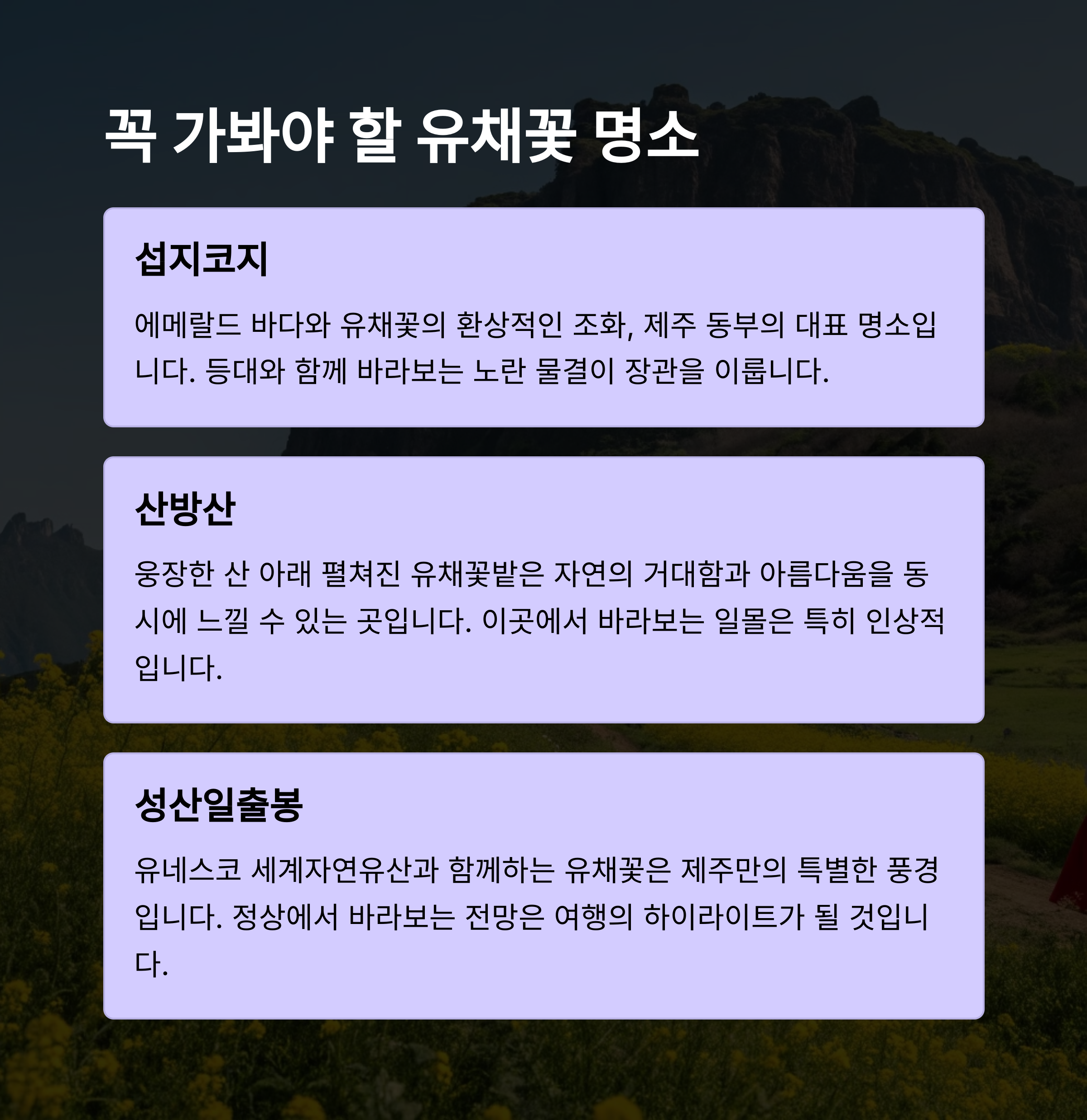 🗺️ 제주 유채꽃 여행 추천 코스