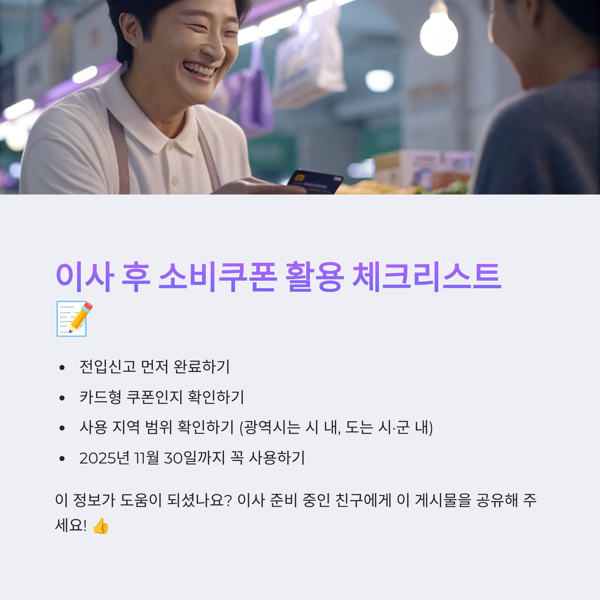 카드 하나로 뚝딱! 이사 후 소비쿠폰 활용 시 체크리스트 📝