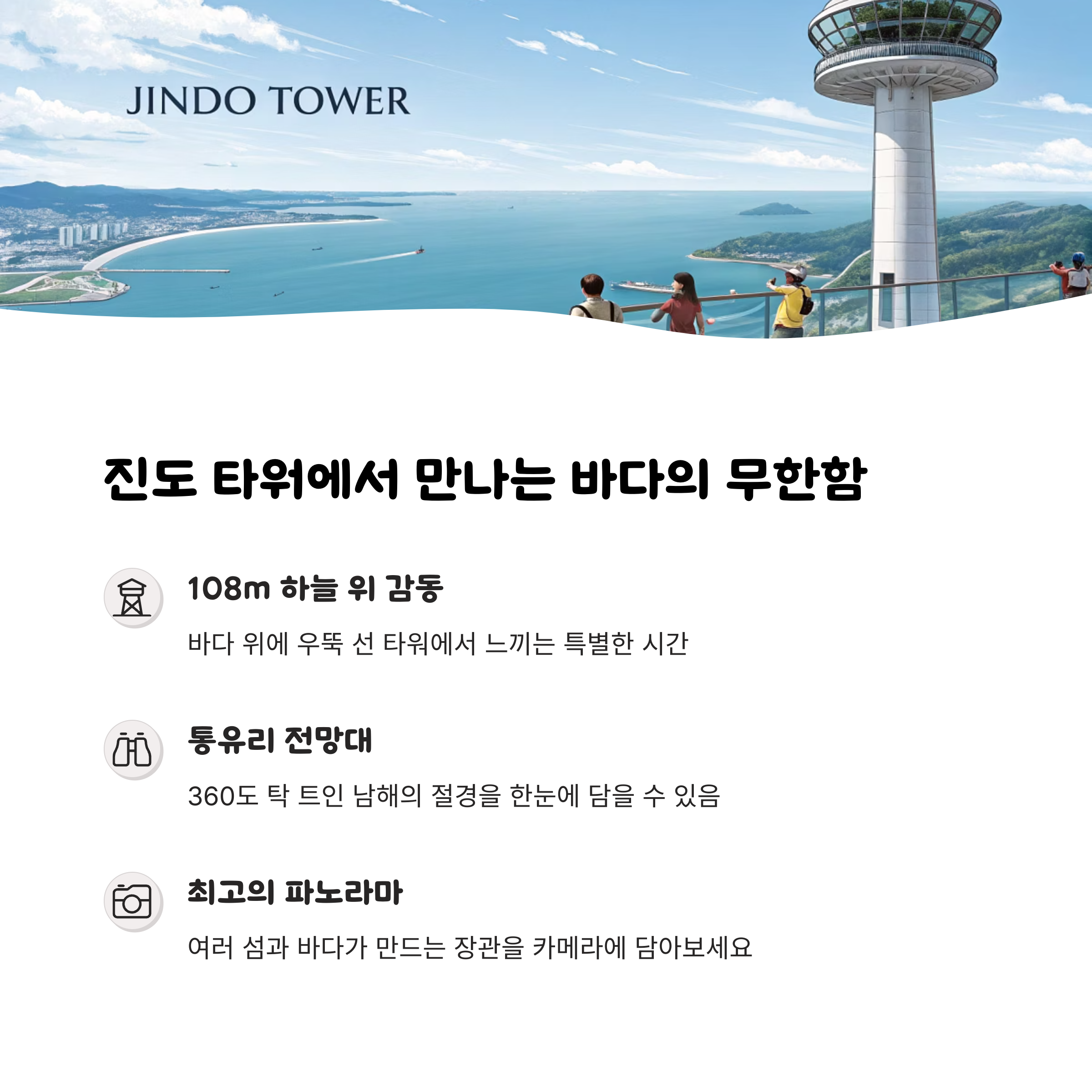 진도 타워는 끝없이 펼쳐진 바다를 한눈에 감상할 수 있는 환상적인 장소예요.