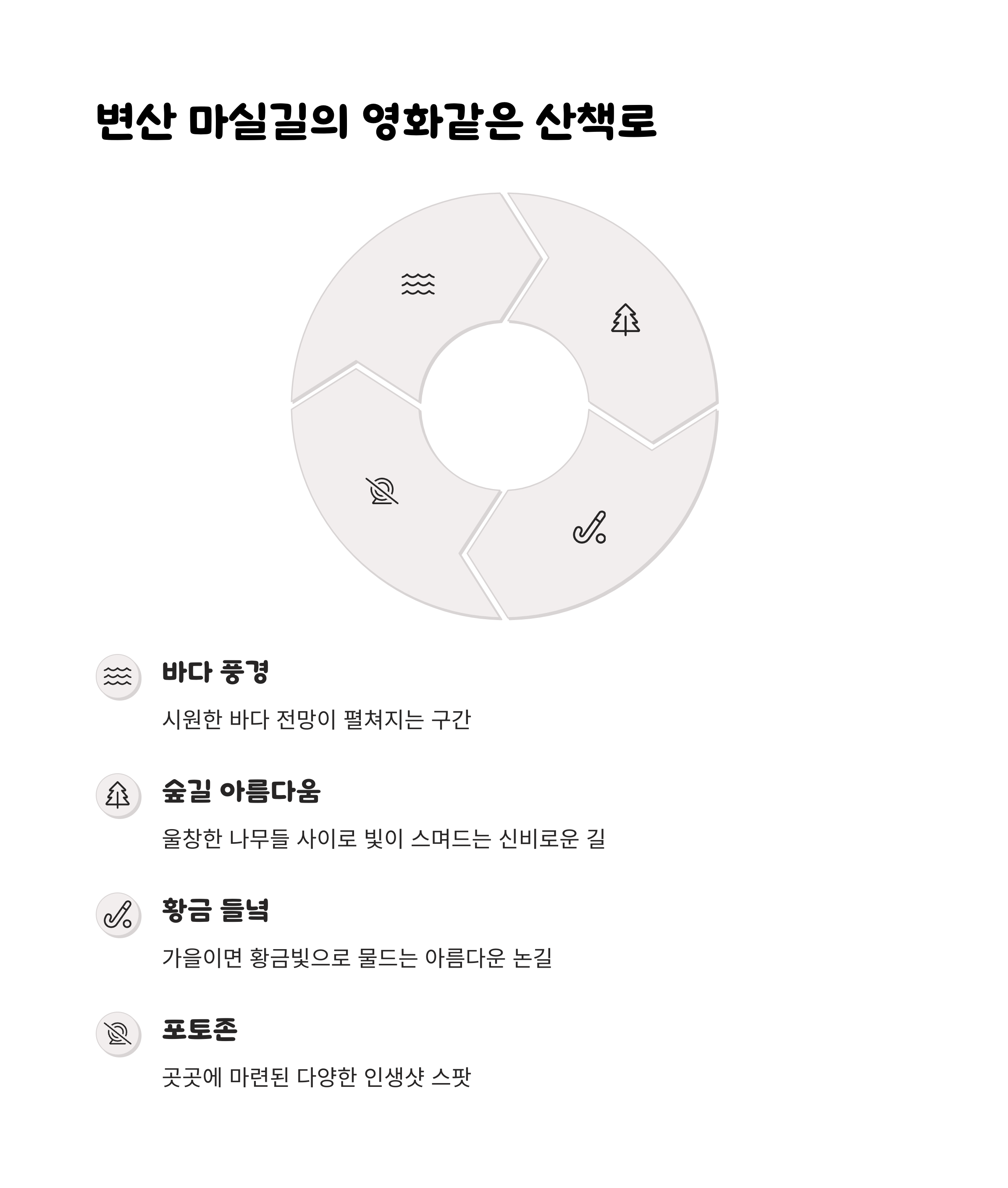 변산 마실길은 해변을 따라 조용히 걸으며 힐링할 수 있는 여행 코스입니다.