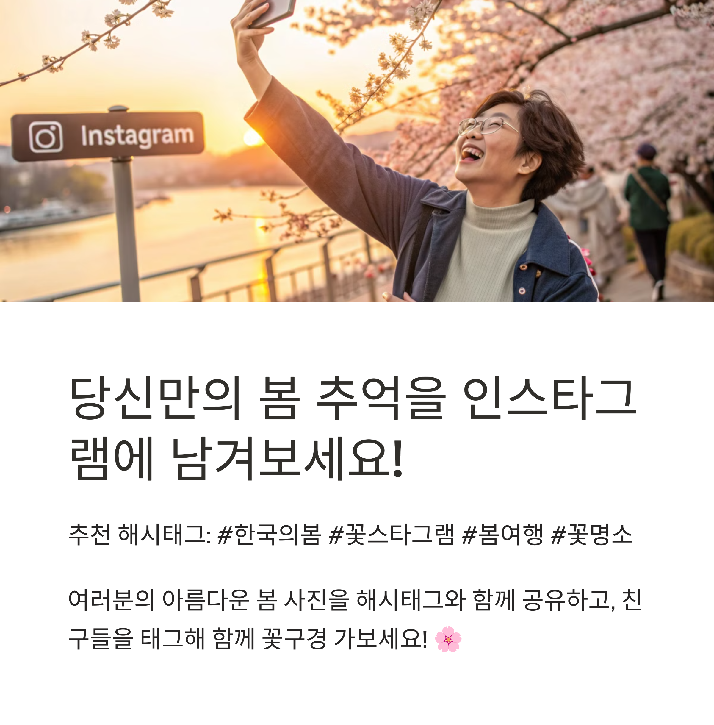 여러분은 어떤 꽃 명소를 가장 방문하고 싶으신가요? 혹은 이미 다녀오셨다면, 어떤 경험이 가장 기억에 남나요? 댓글로 여러분의 꽃 여행 이야기를 공유해주세요! 그리고 더 많은 계절별 인스타그램 핫플레이스 정보를 원하신다면 구독 버튼을 눌러주세요. 다음 시즌에도 여러분의 인스타그램을 빛내줄 정보로 찾아올게요! 🌸📸✨