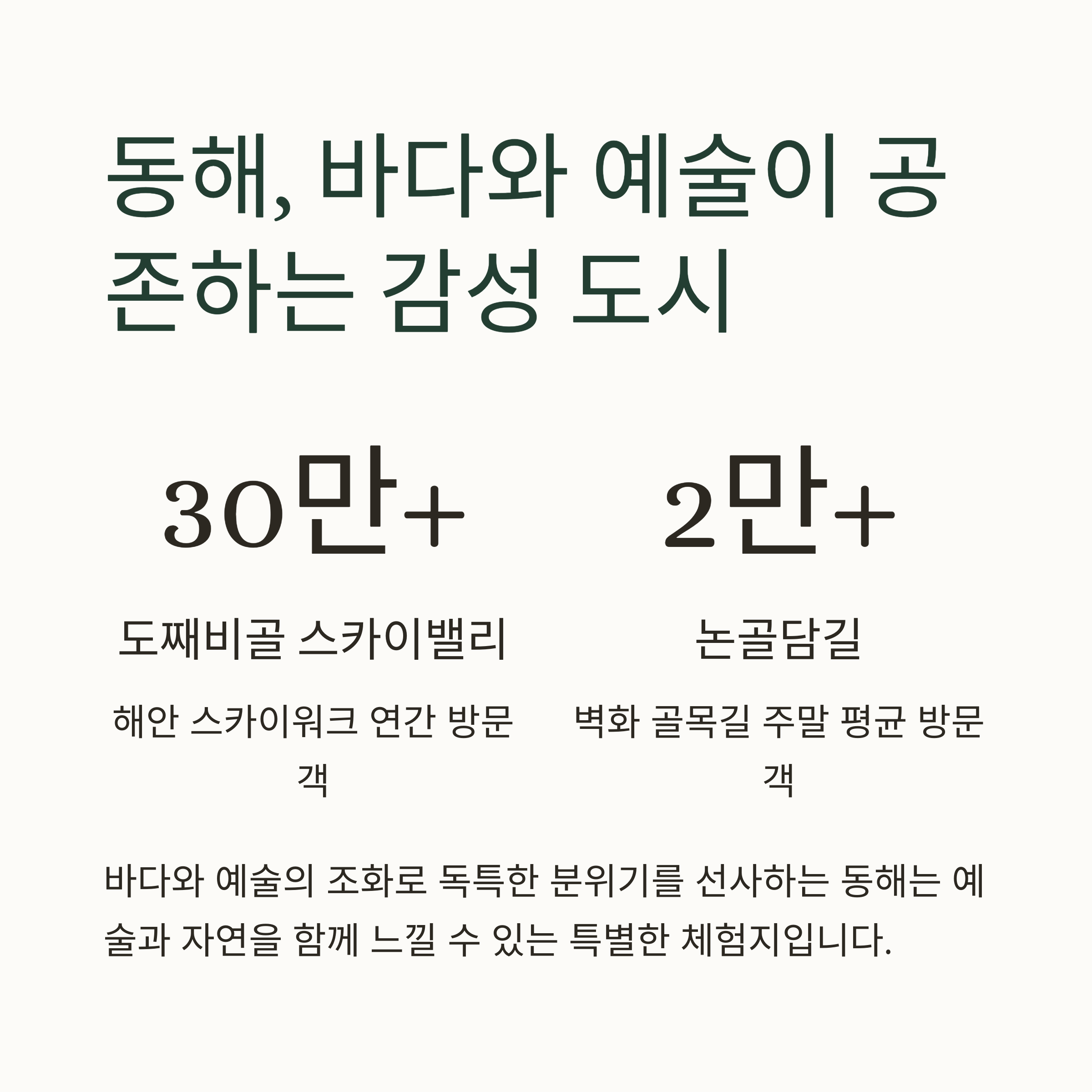 | 논골담길 | 벽화 골목길 | 주말 평균 2만 명 이상 |