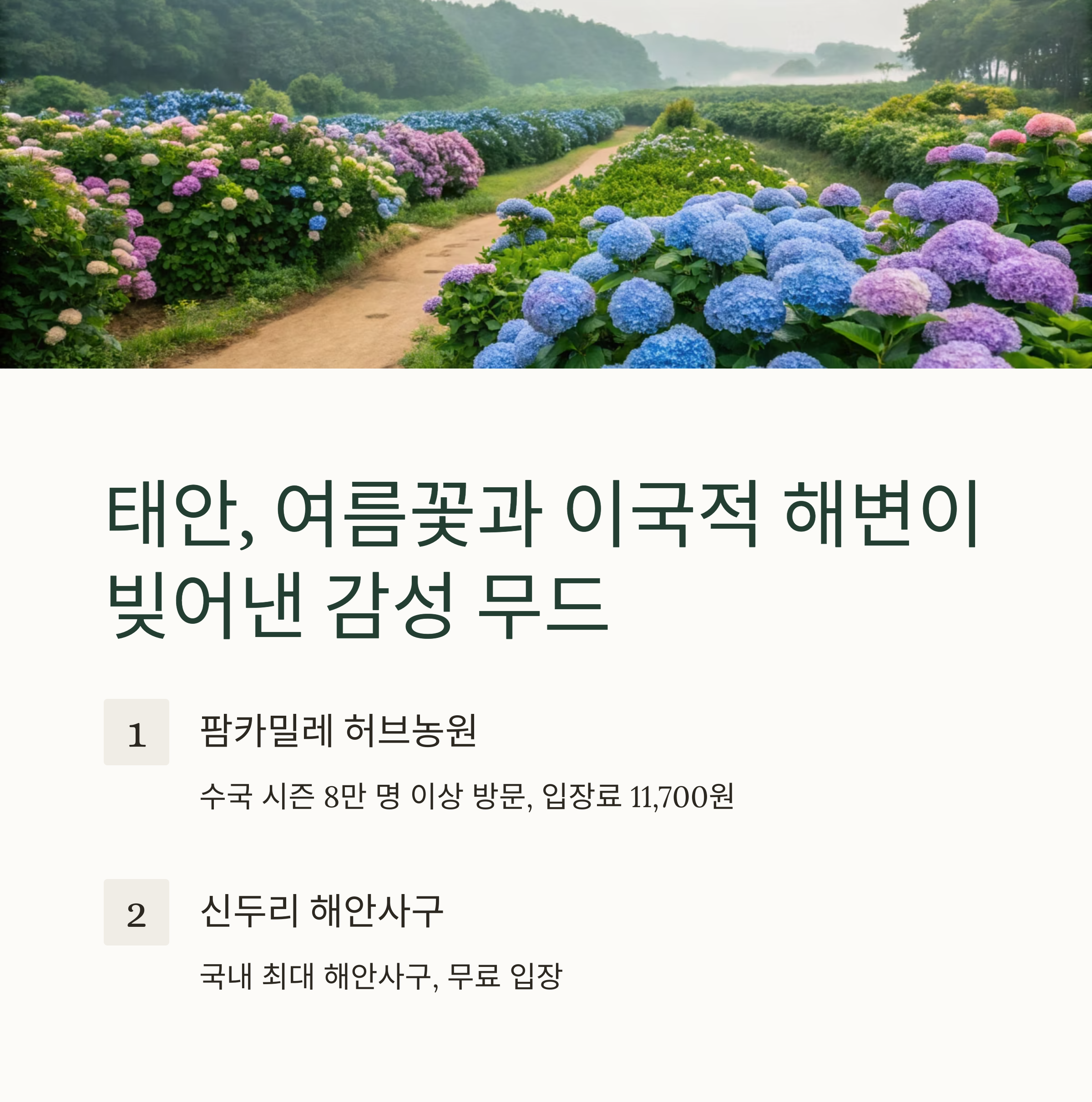 태안, 여름꽃과 이국적 해변이 빚어낸 감성 무드
