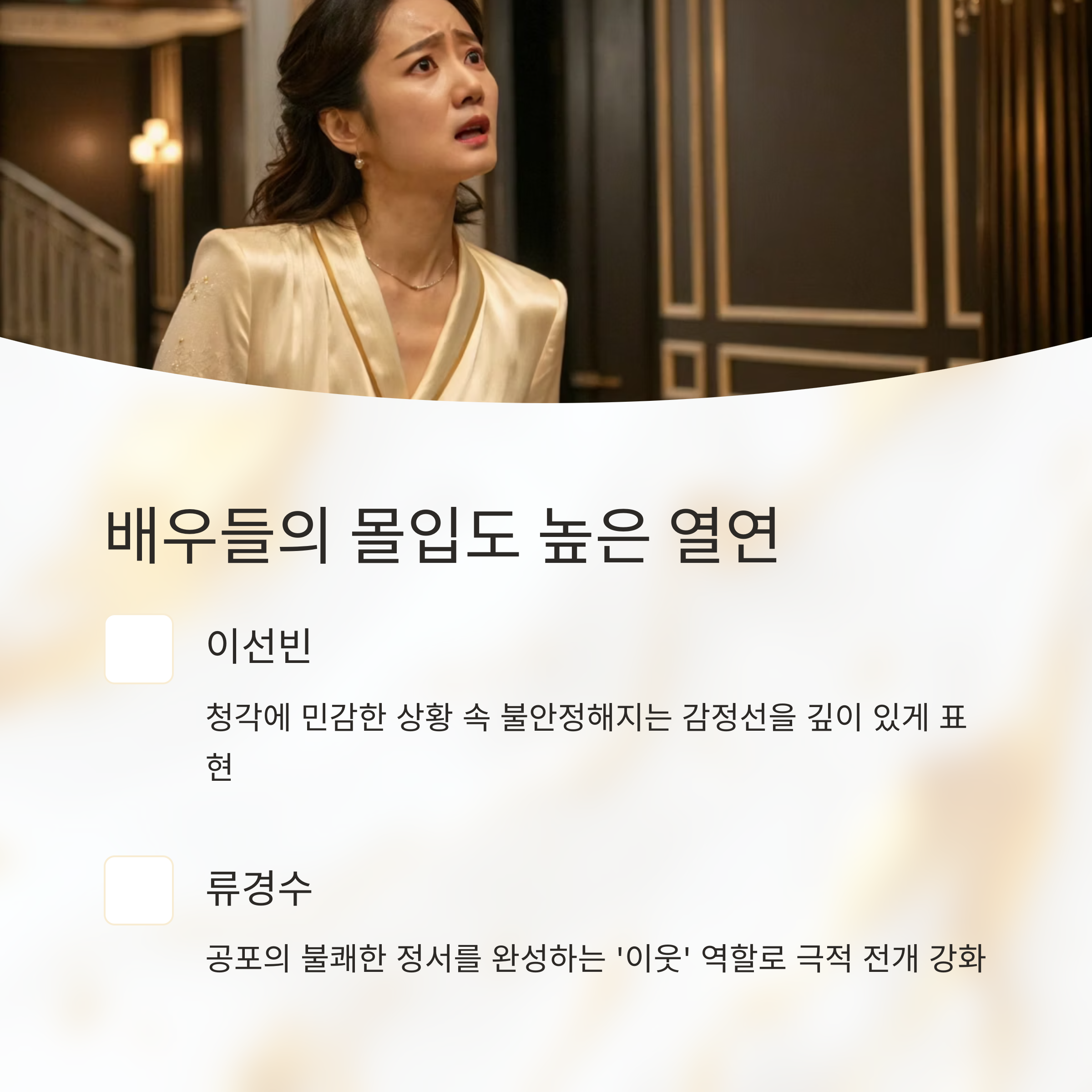 극적인 전개를 끌어올립니다. 특히 이선빈의 감정 연기와 심리 변화는 전체 이야기의 중심축이라 할 수 있습니다.
